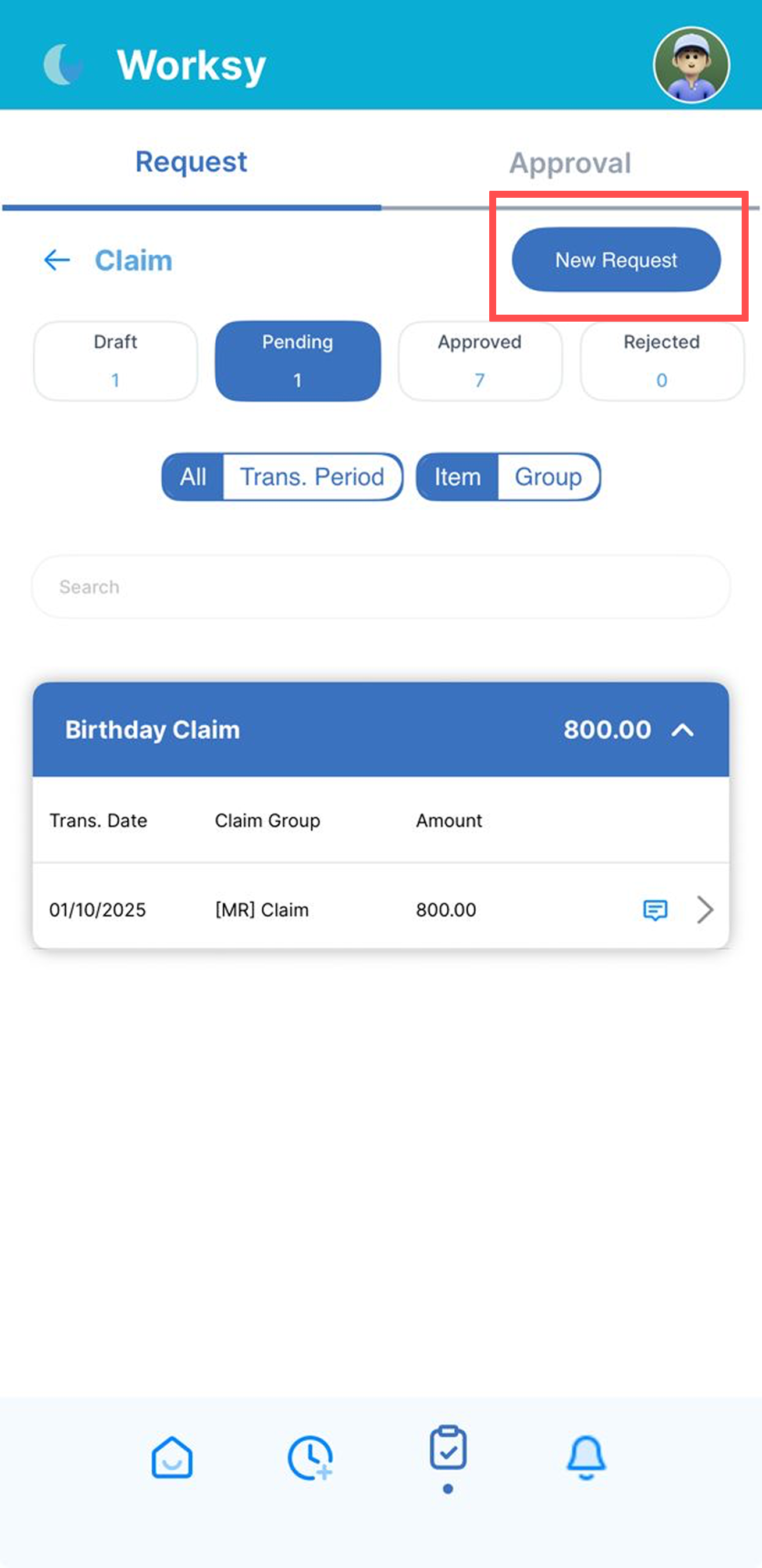 Tap My Request icon at the bottom of the screen, then select Claim.