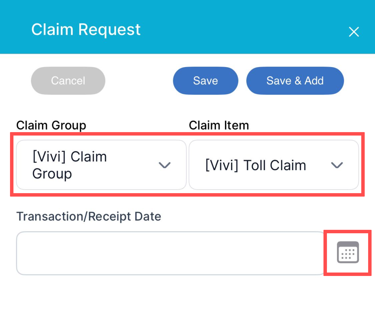 Tap the calendar icon to choose the Transaction / Receipt Date.