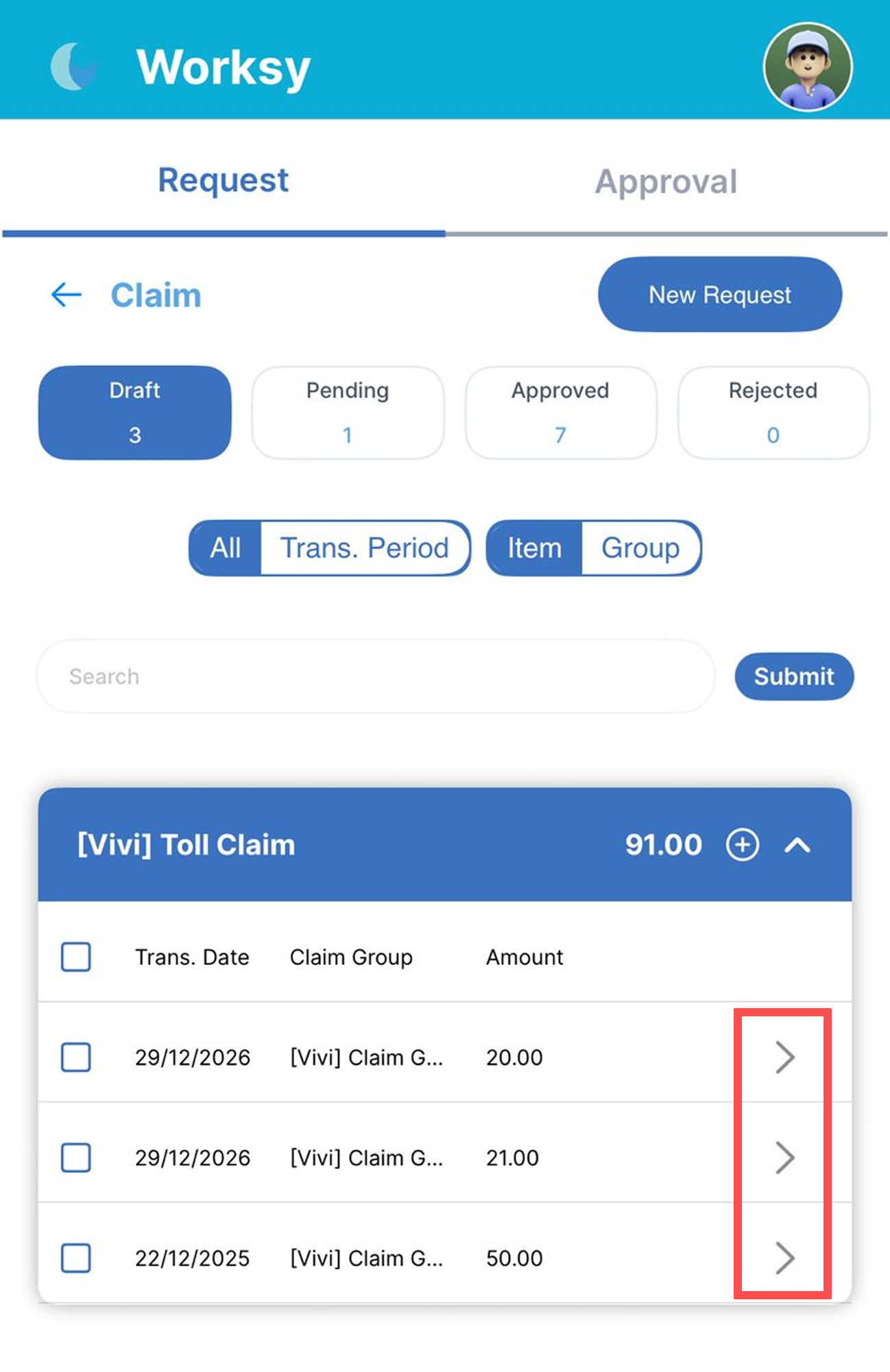 Go to Draft tab. Tap on the arrow next to each claim amount.
