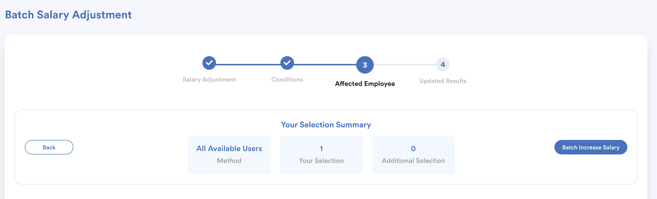 After ensuring the num of selected employees are correct, click “Batch Increase Salary”.