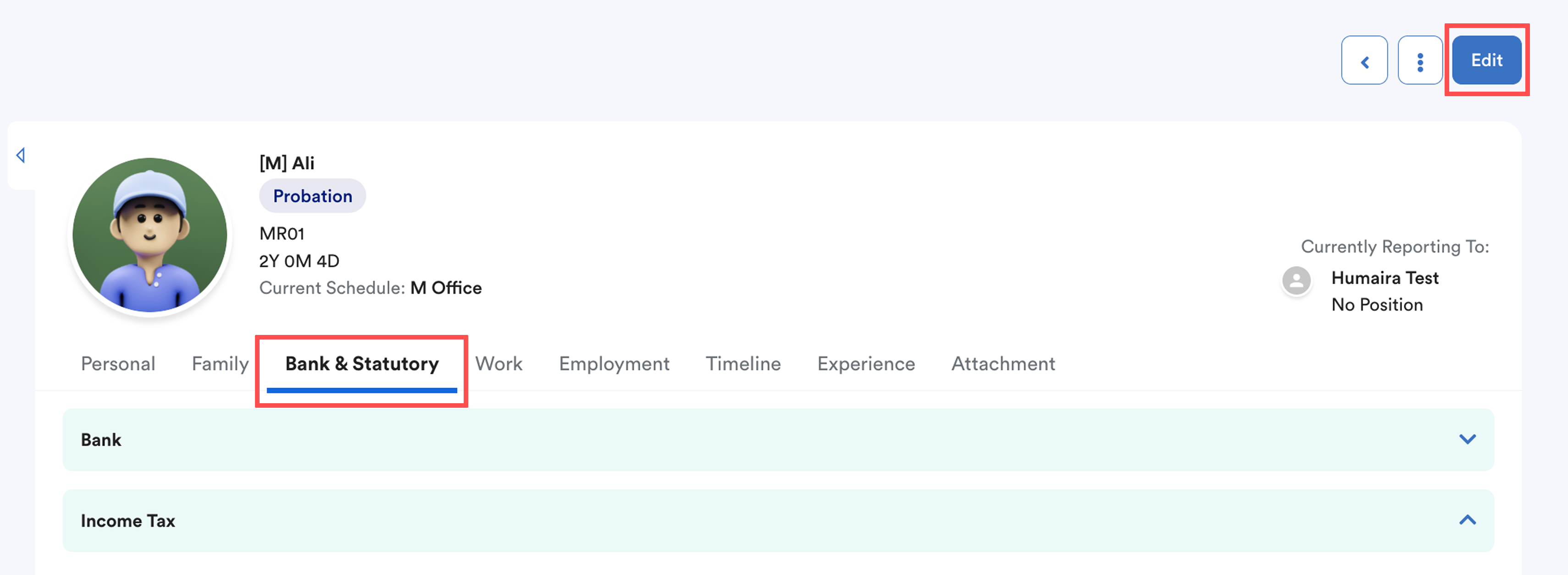 Next, navigate to the Bank & Statutory tab and click Edit.