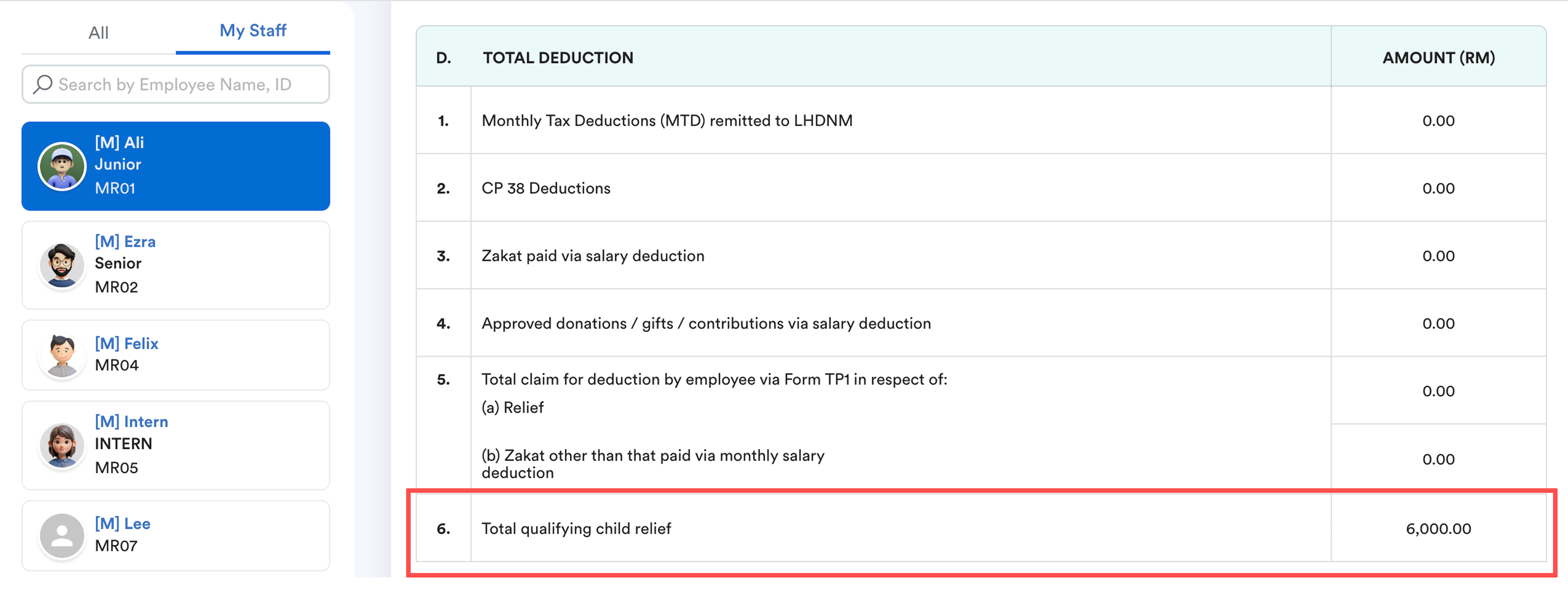 The number of children recorded will automatically affect the employee’s total qualifying child tax relief.