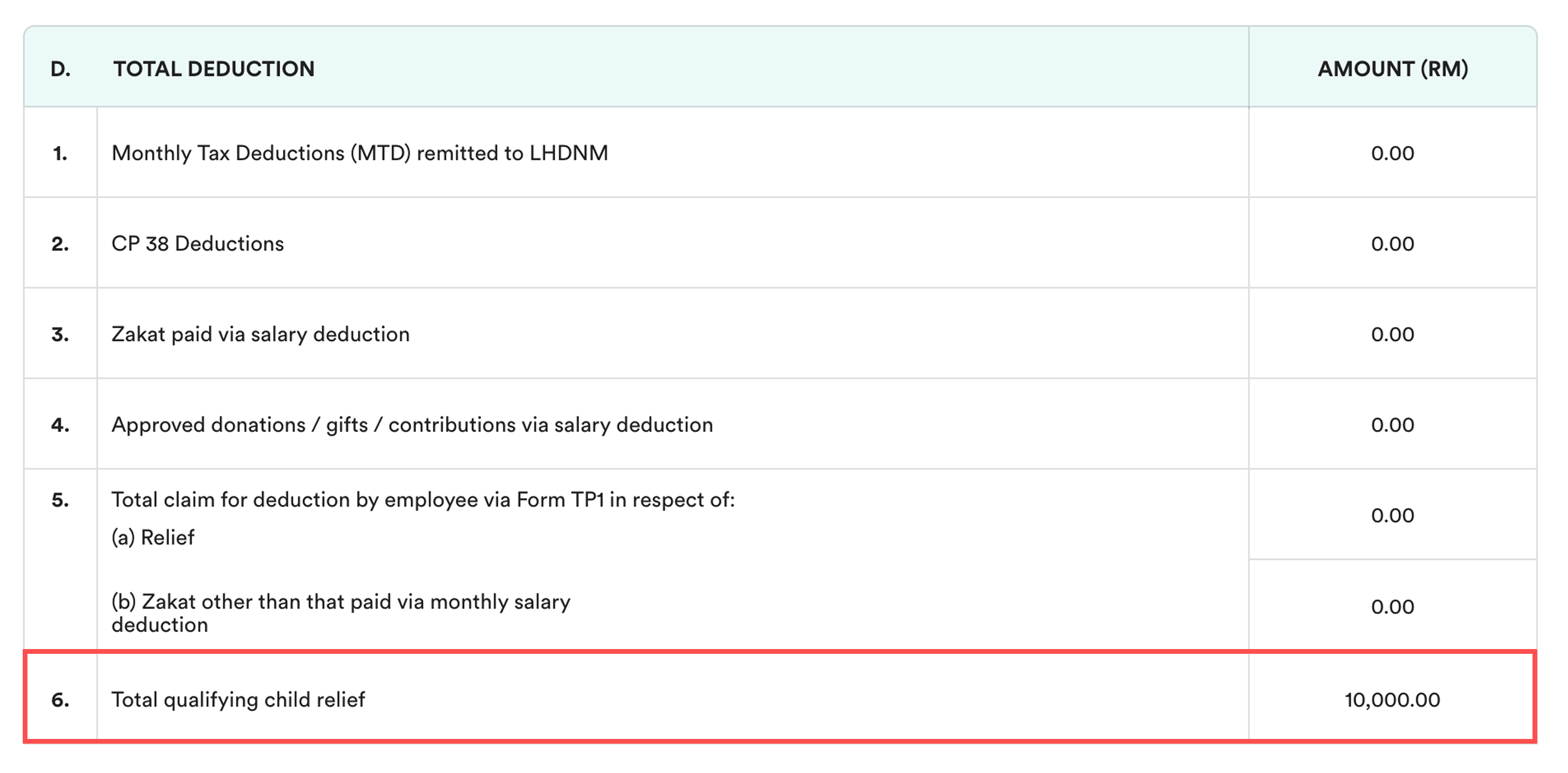 The system will calculate child relief according to the selected Child Category, such as: