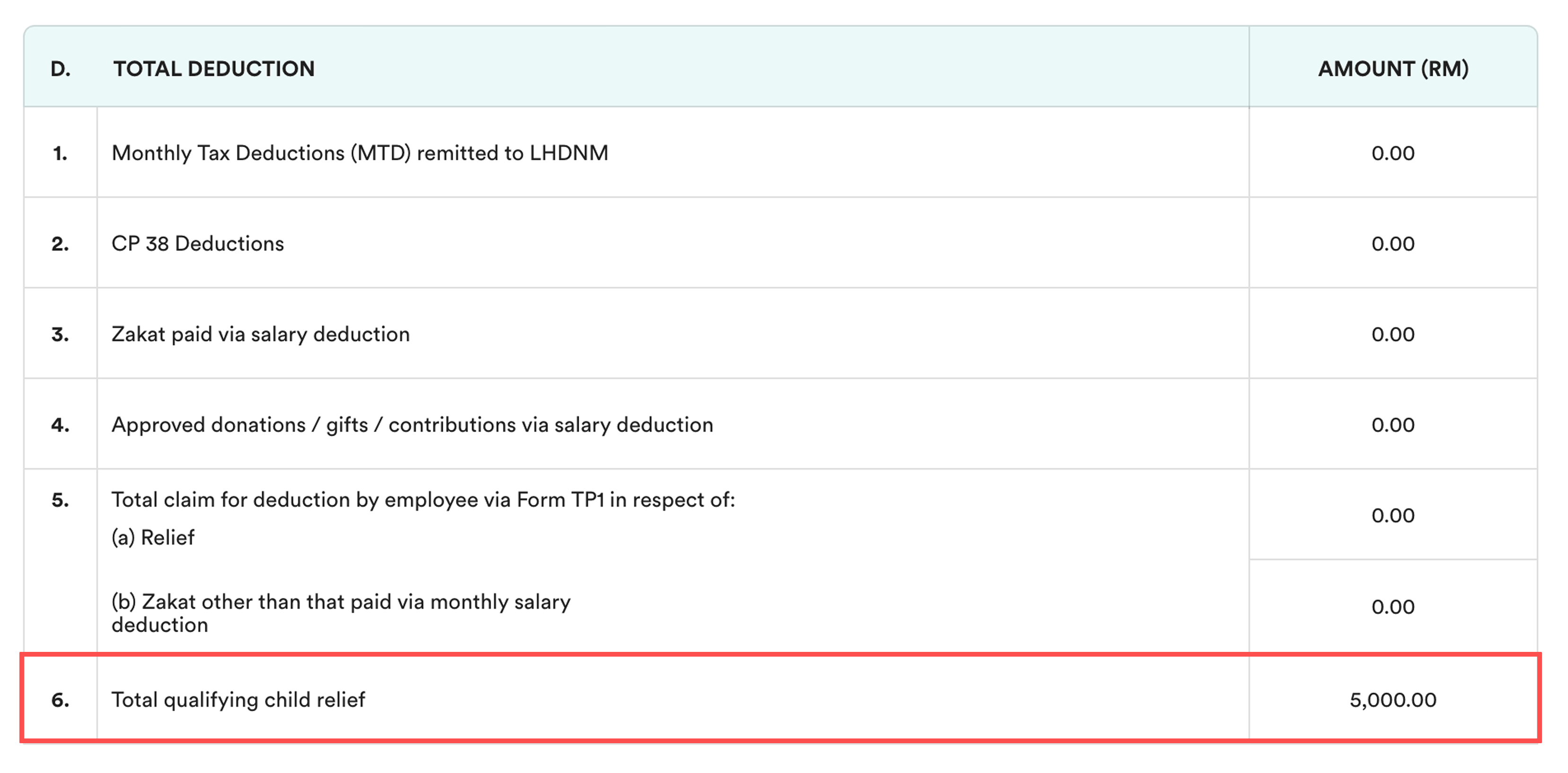 Select the employee and scroll down to Section D: Total Deduction.