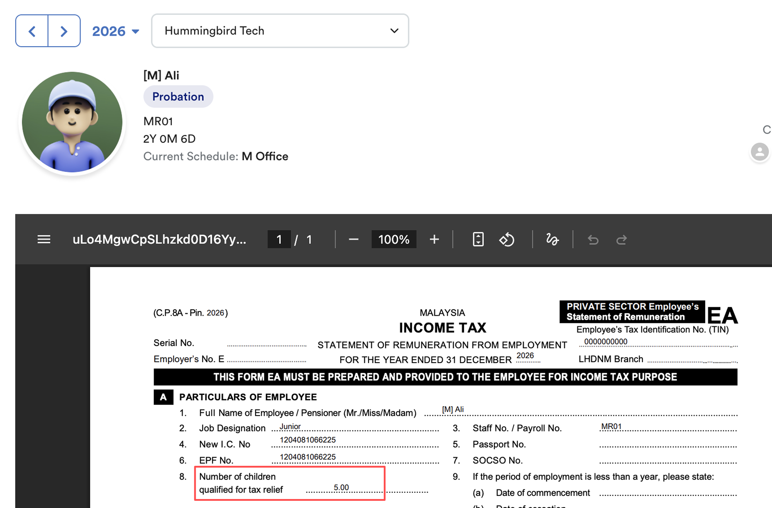 To ensure compliance with LHDN requirements, the system calculates the number of children using the following formula: