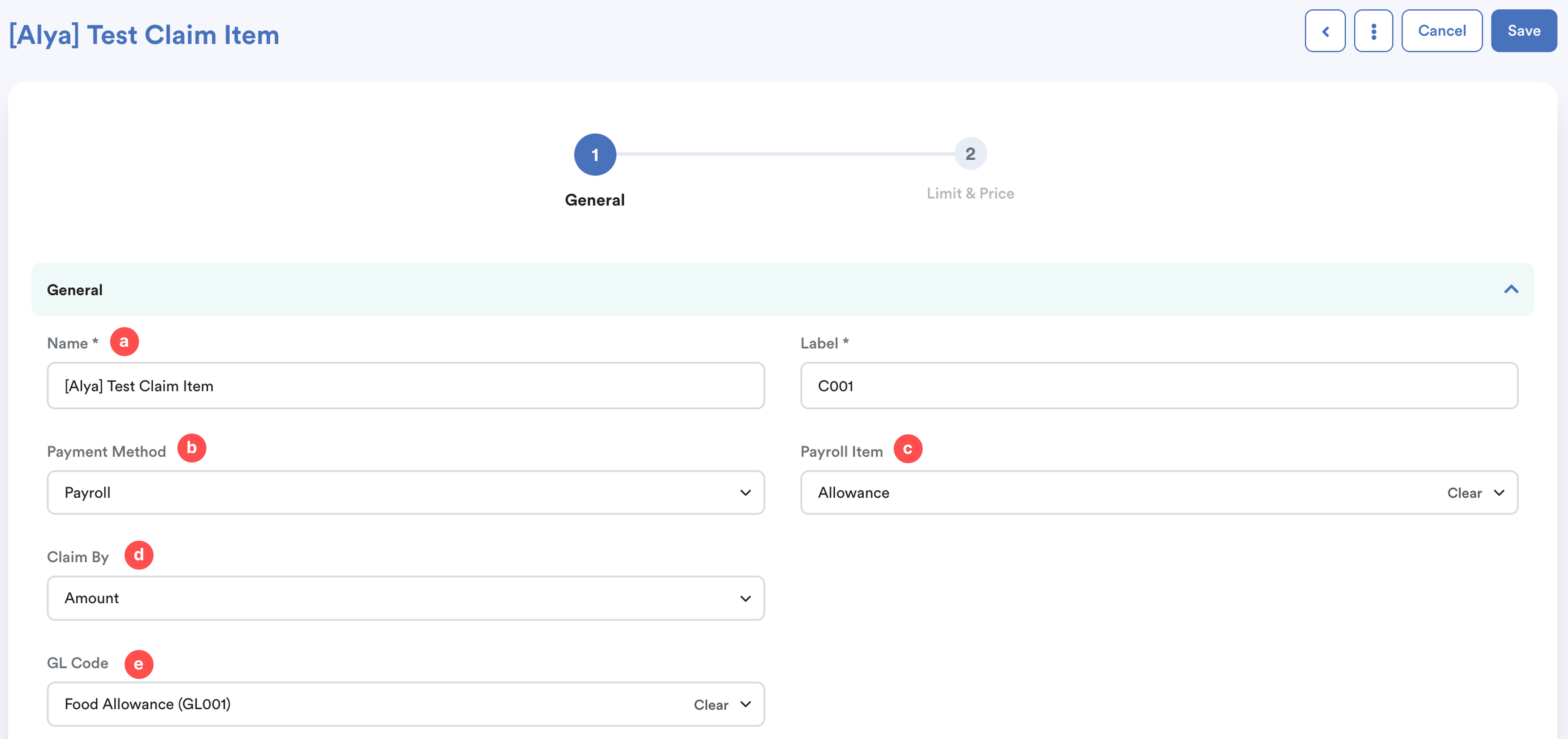 (e) The next box you will fill up will be the GL Code. Just press the drop-down options to select one, or you can also refer to this guide to set up a GL Code if you haven't yet. How to link GL Code to Claim Item? : Knowledge Base (freshdesk.com)