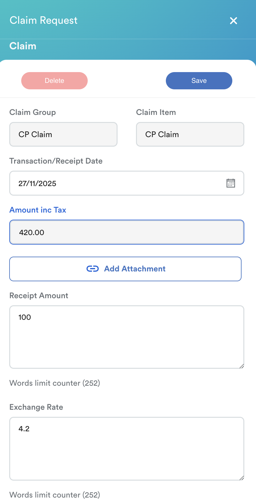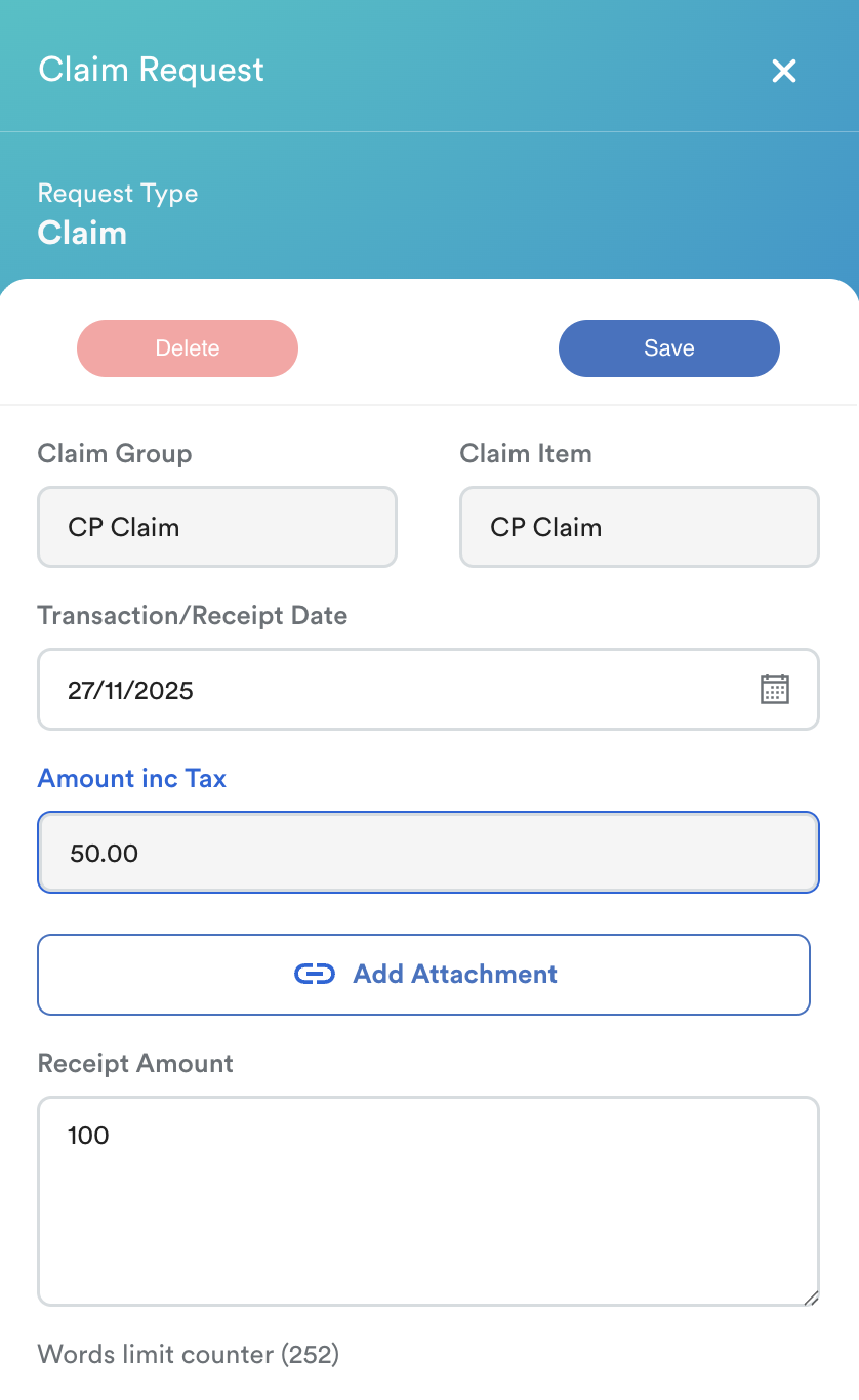 Then you can fill in the custom fields that you can make mandatory for your employees to fill in before they apply for a claim request.