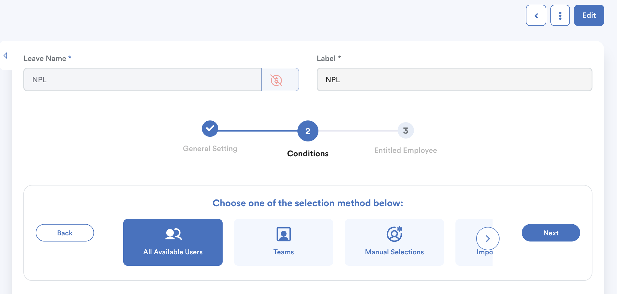 You will then be directed to this page where you must fill in the leave name and label. Once you have finished that, you will manage the General Settings.