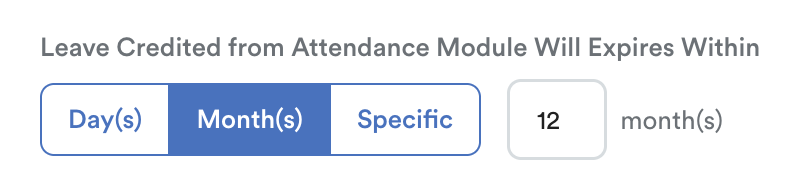 If "Specific" is selected, you can define "end of current year" or "end of next year" based on the month the leave is credited. Make sure you fill in all 12 months, without selecting the expiry options means these months will not have any expiry date.