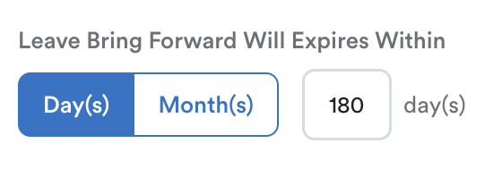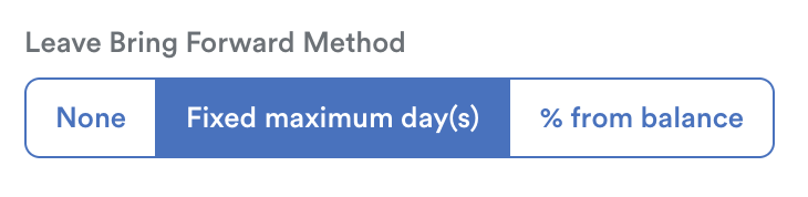 - % From Balance = Decide how many % of leave balance to carry forward. For example, an employee has 12 days of leave, next year they will have 6 bring forward leave if you put in 50%.