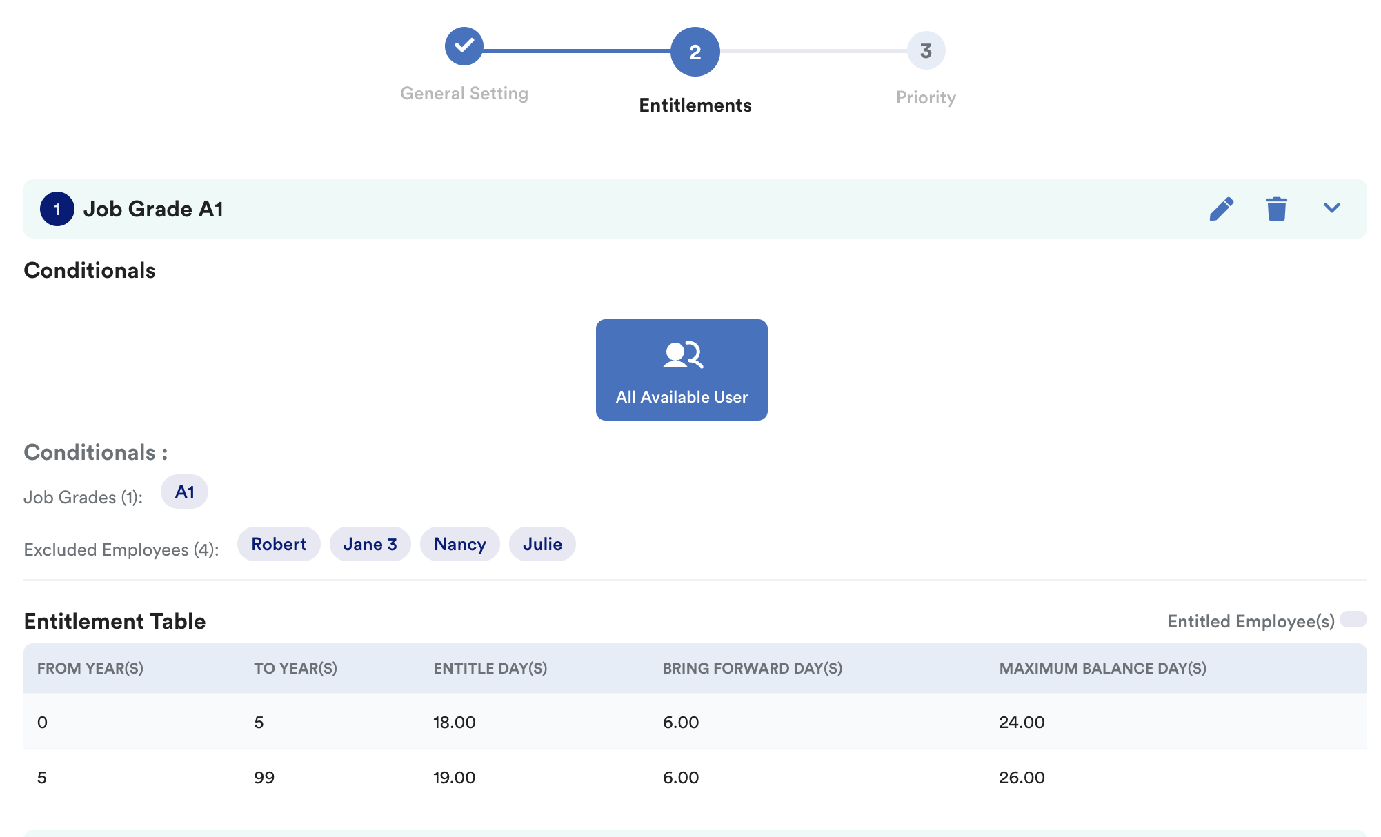 You will be redirected to this page, and this is where you can set up individual entitlements for every employee.