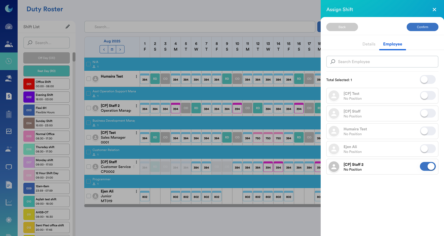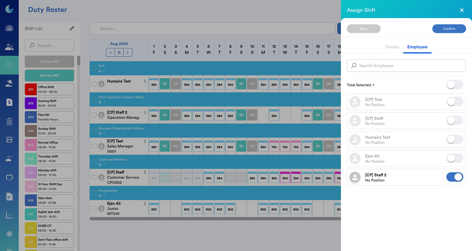 c) Under the Employee tab, you will be able to see your staff list. Select your staff before clicking confirm.
