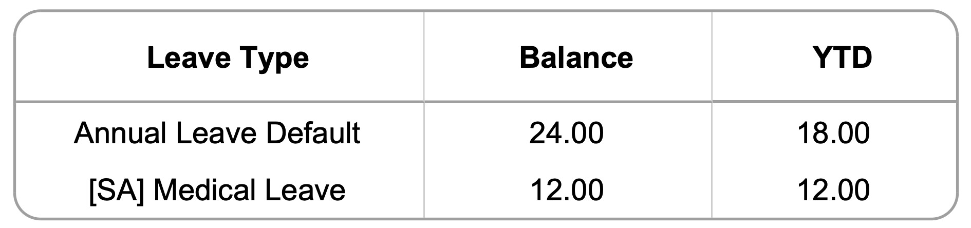 The leave types displayed are based on the Leave Info Display setting in each leave type. You can select which leave types should appear here.
