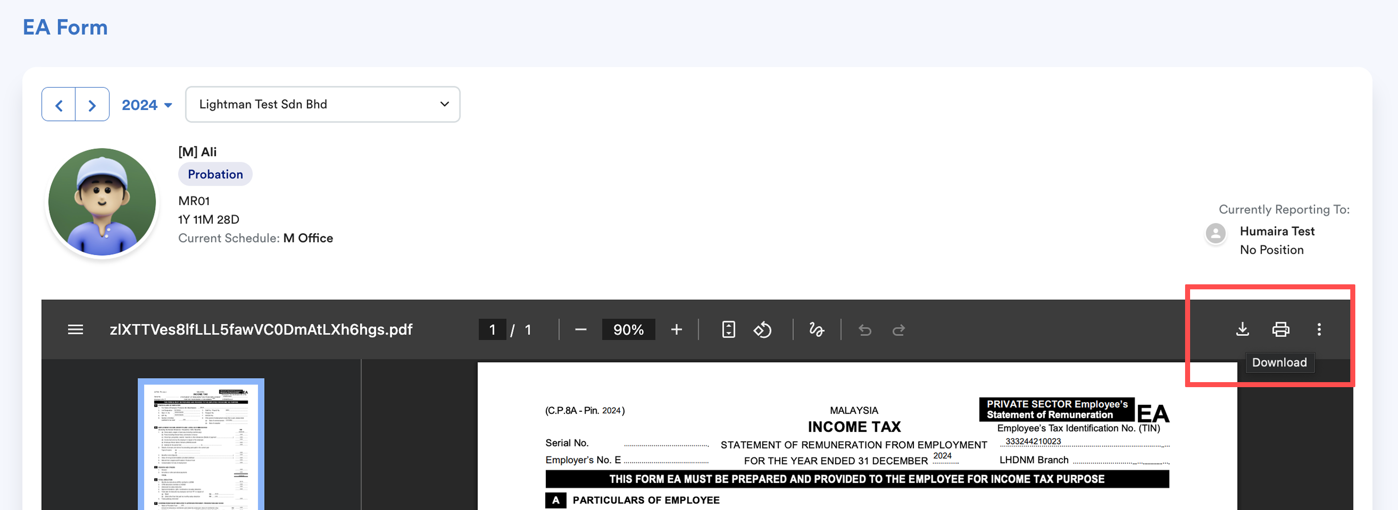 Note: EA Form details are read-only and cannot be edited by employees. If you notice any inaccuracies, please inform your HR team for correction.