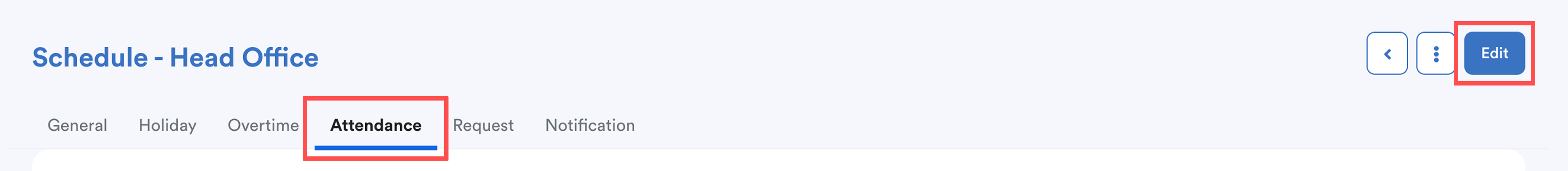 On the left menu, go to Settings (a) > Attendance (b) > Schedule (c).