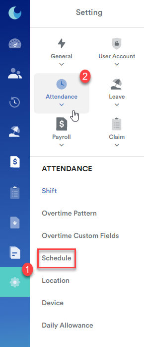 This setting is under your left icon > Setting > Attendance > Schedule.