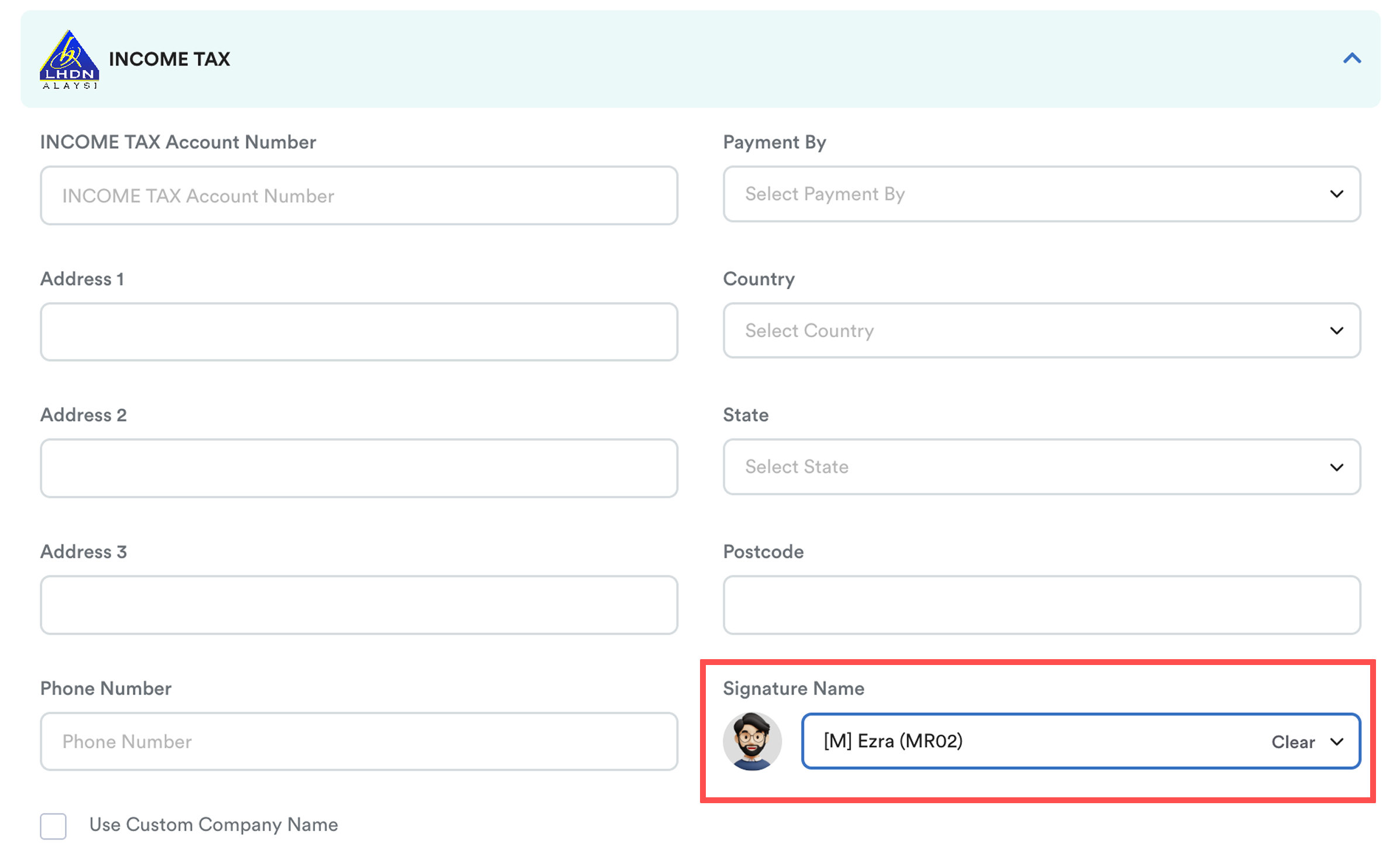 Select the relevant statutory body. For example LHDN - Income Tax.