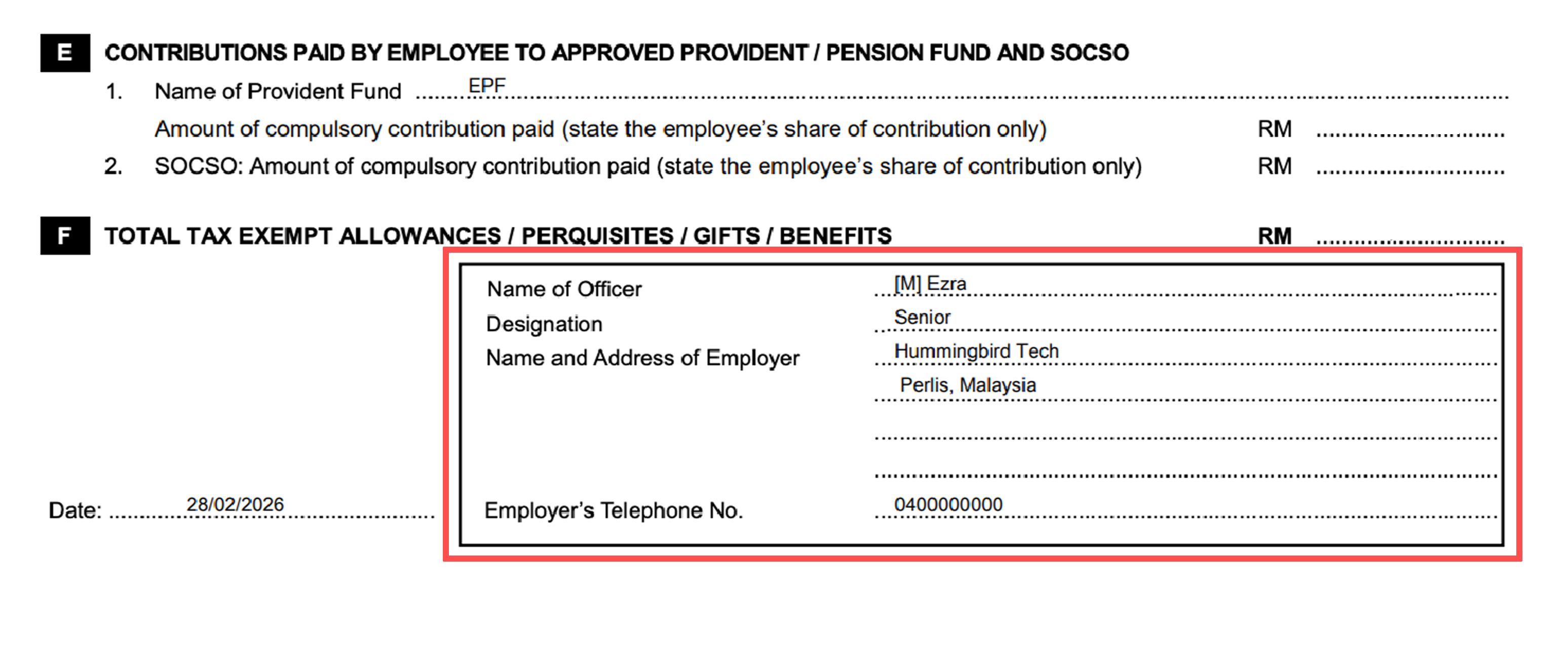 The selected officer’s name will appear accordingly on the statutory form (for example, on the EA Form).
