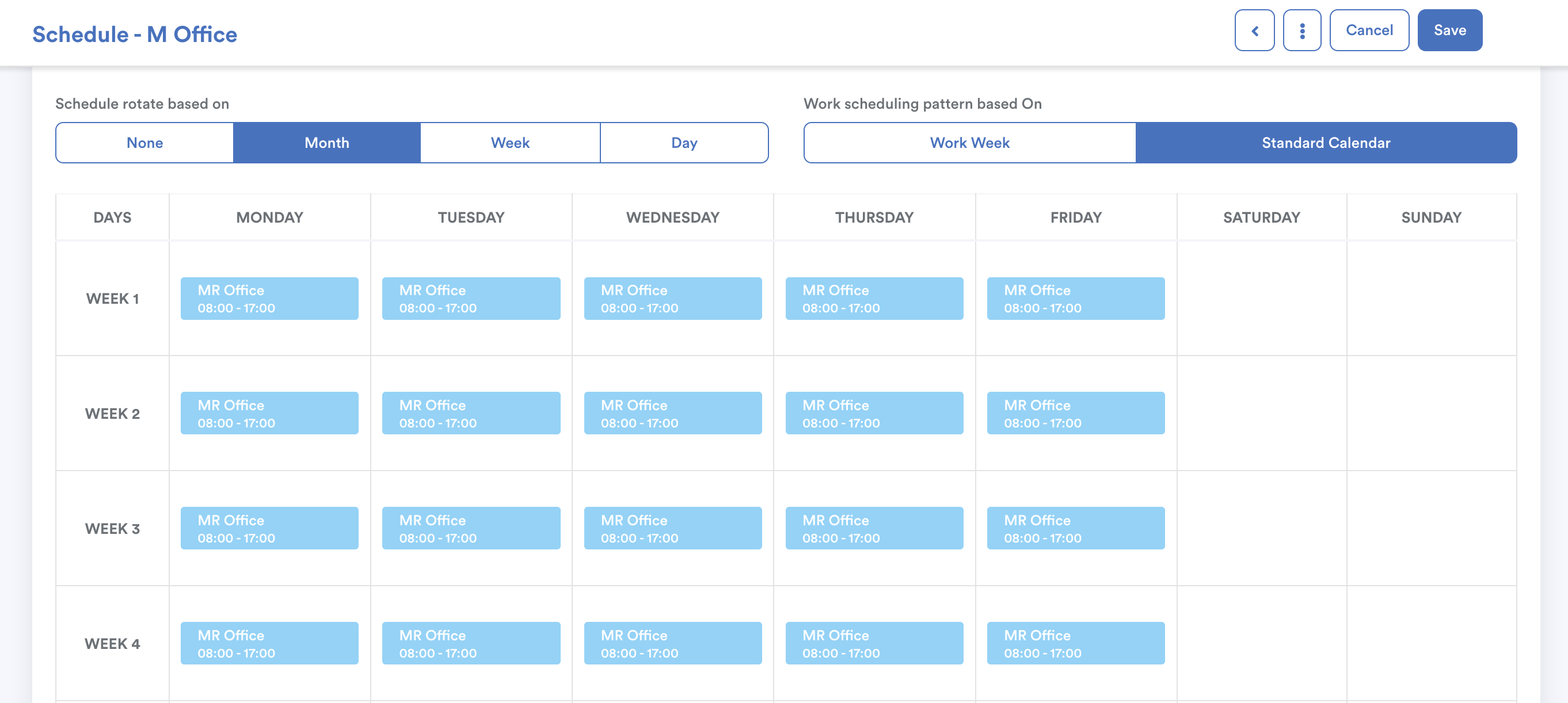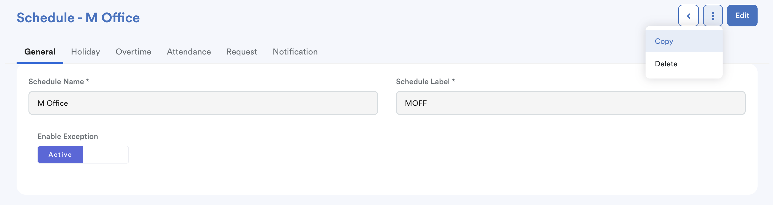 Similar to the shift setup, you may duplicate the employee’s current schedule to ensure all schedule settings remain unchanged.