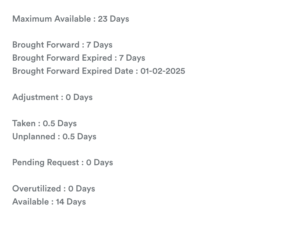 - Brought Forward Expired: how long carried-forward leave remains valid.