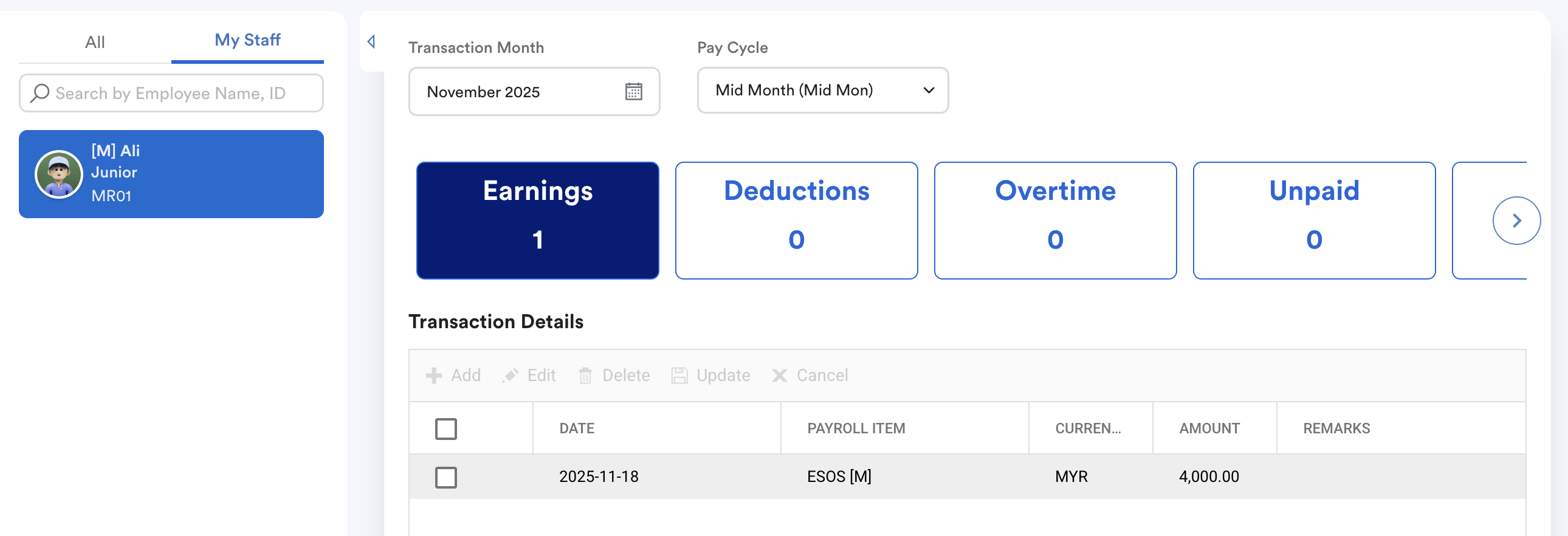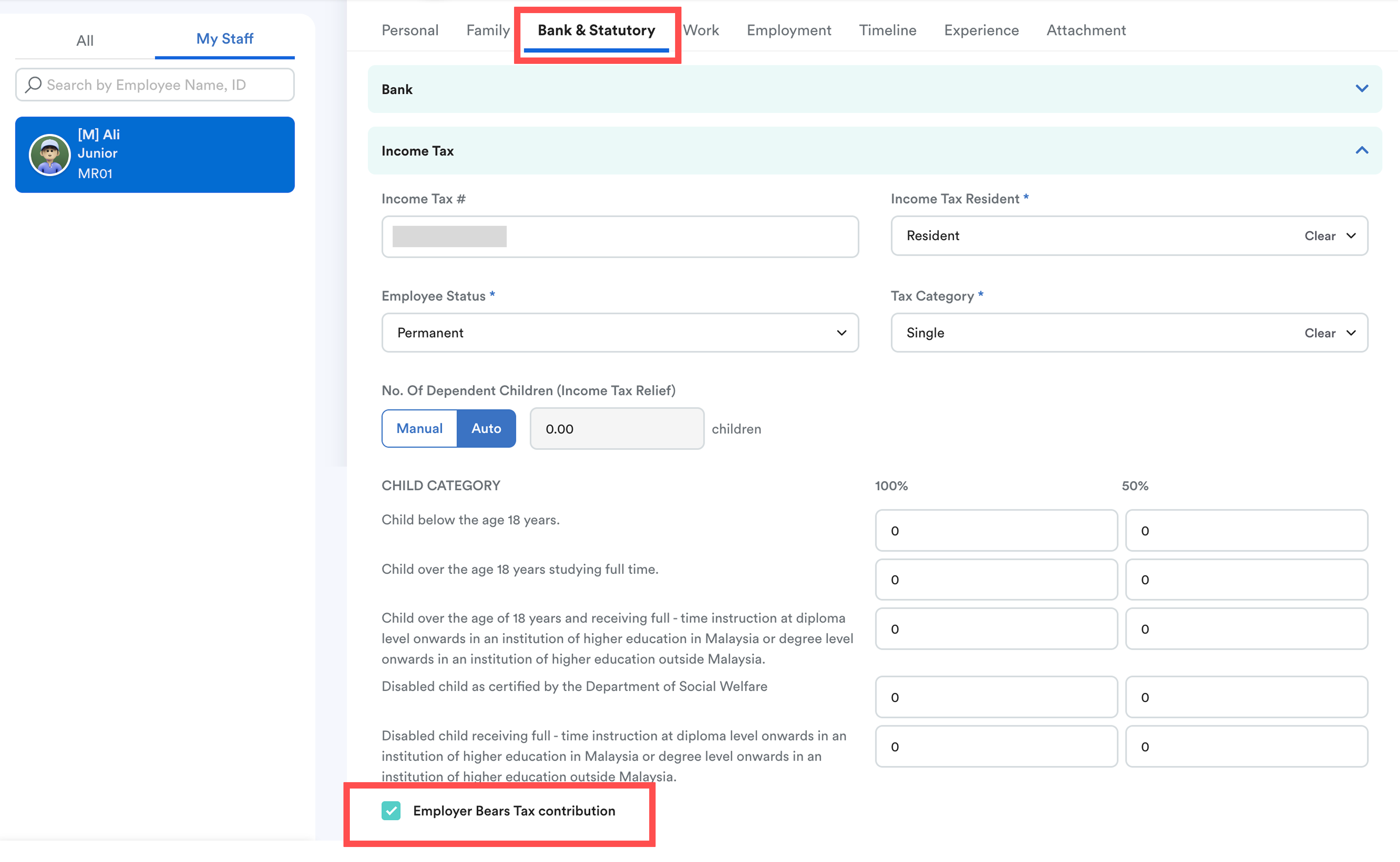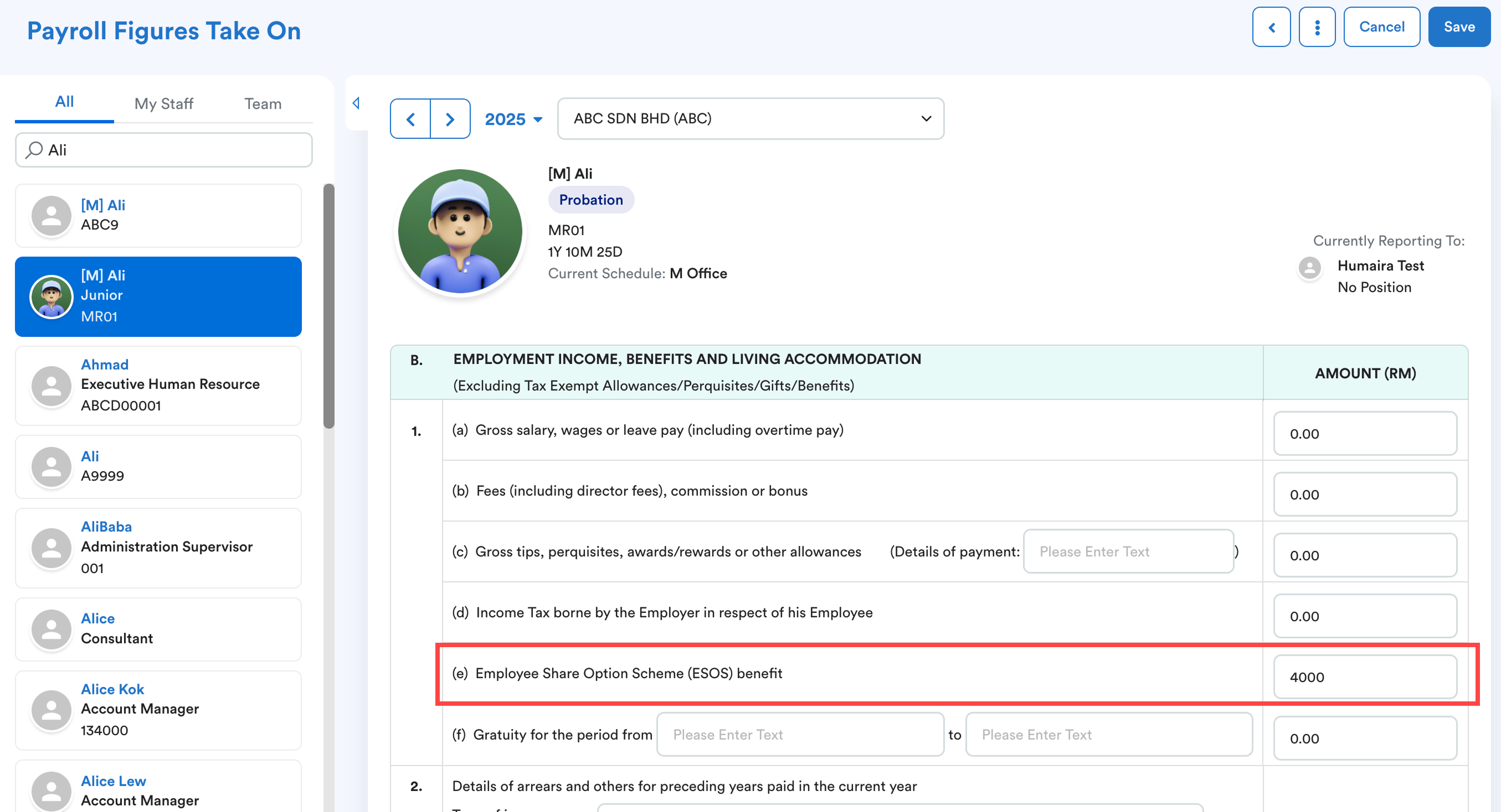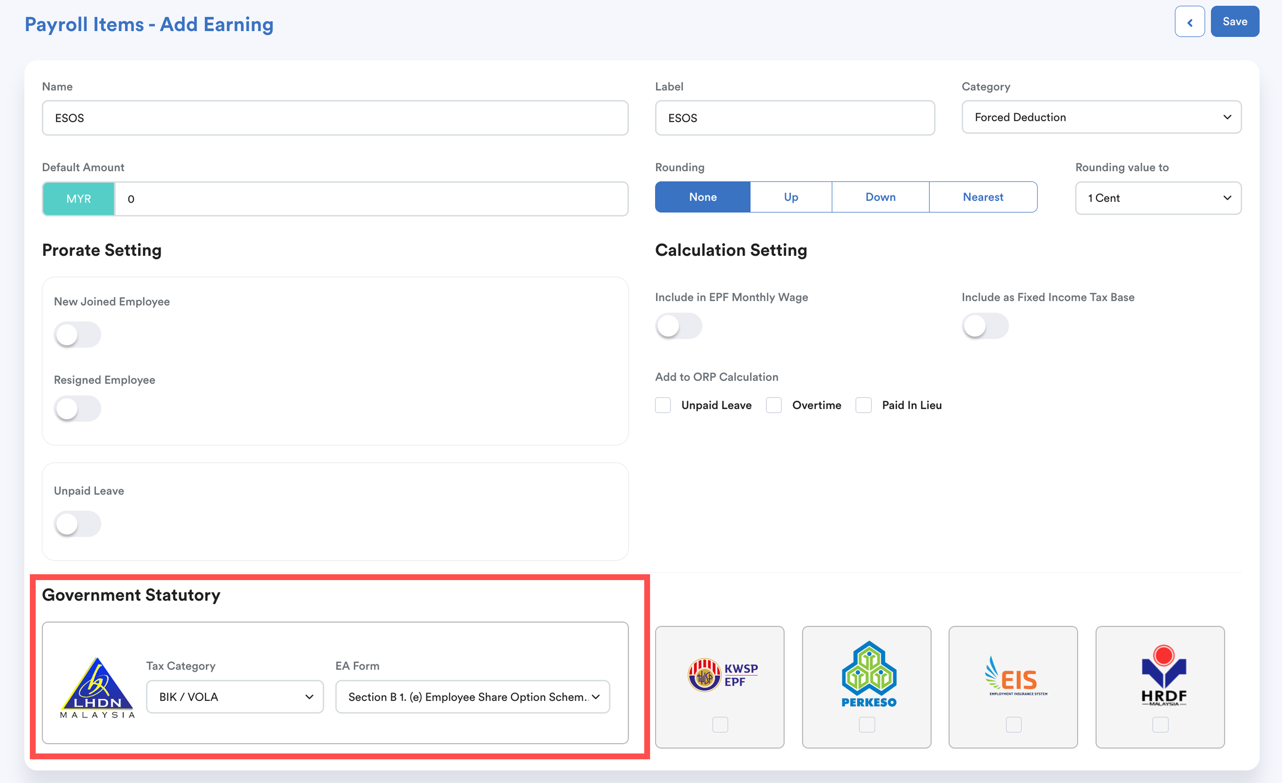 Important: Disable Employer-Borne Tax in employee profile after completing the ESOS processing. This is to ensure we do not disrupt the other payroll cycle processing.