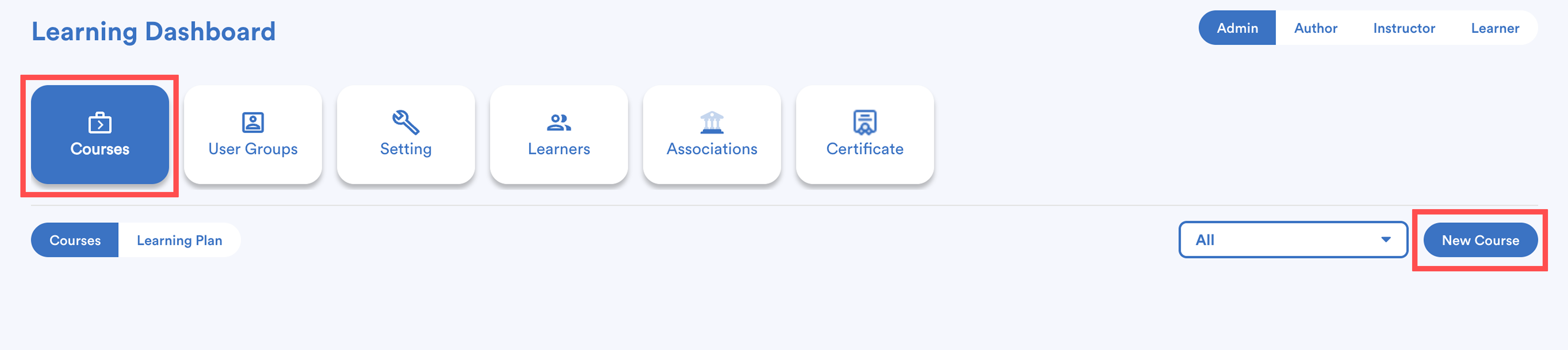 Define your key roles (Admin, Instructor/Author, Learner, External Learner) and assign the necessary permissions.