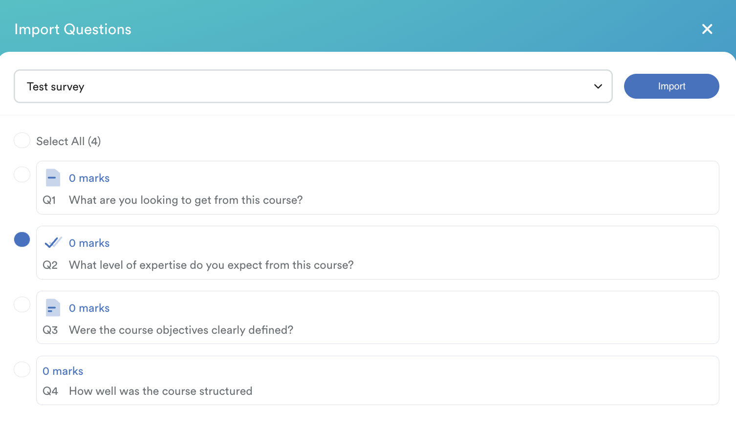 iv. Matrix - Use this when you want learners to rate multiple items using the same scale.