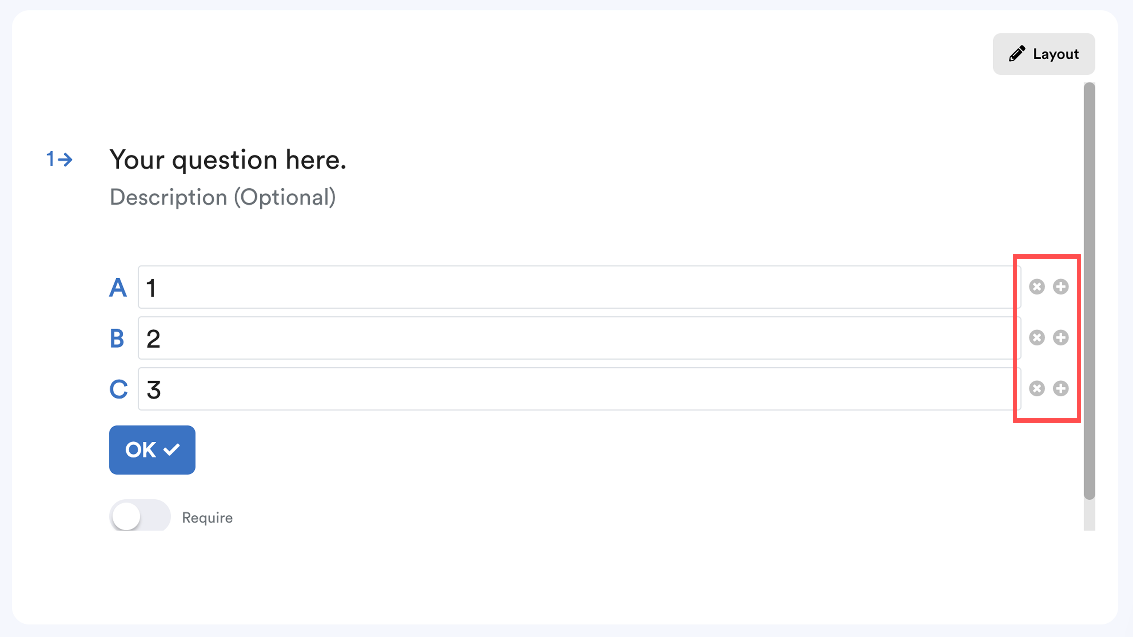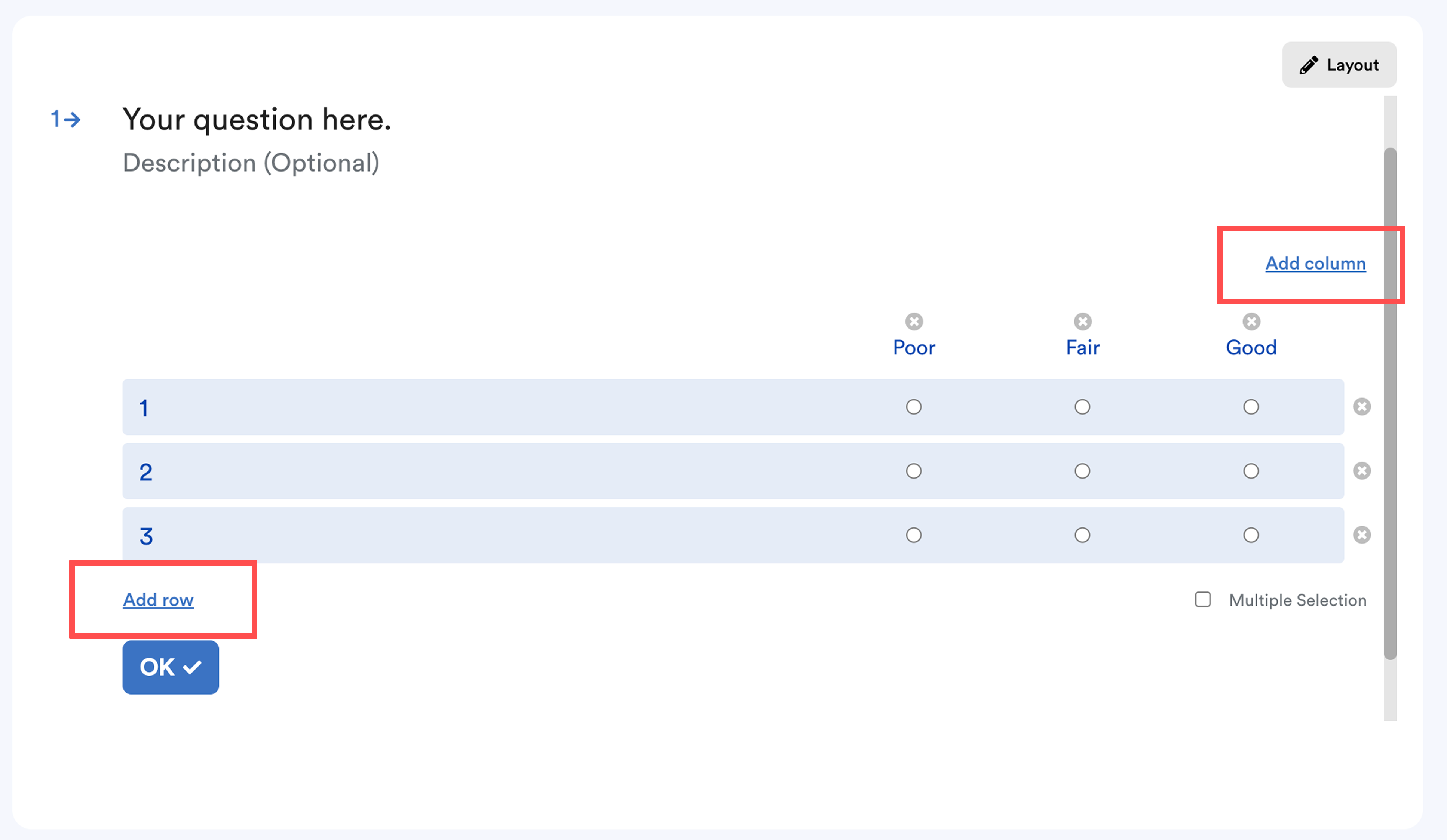 - Click Add Column to add rating values (e.g., Agree → Strongly Agree).
