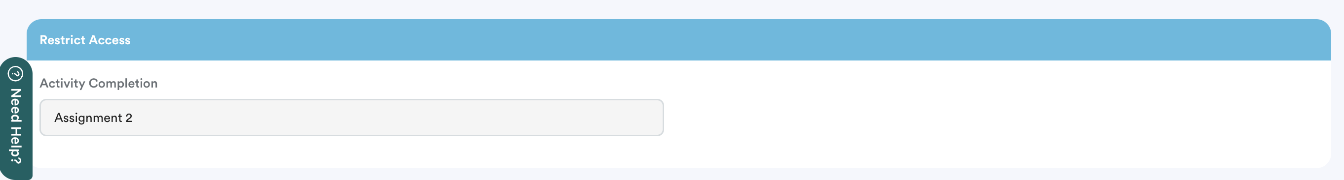 f. Activity Completion - This dropdown lists all activities in the course. Select if learners must complete any prior activity before accessing this survey.