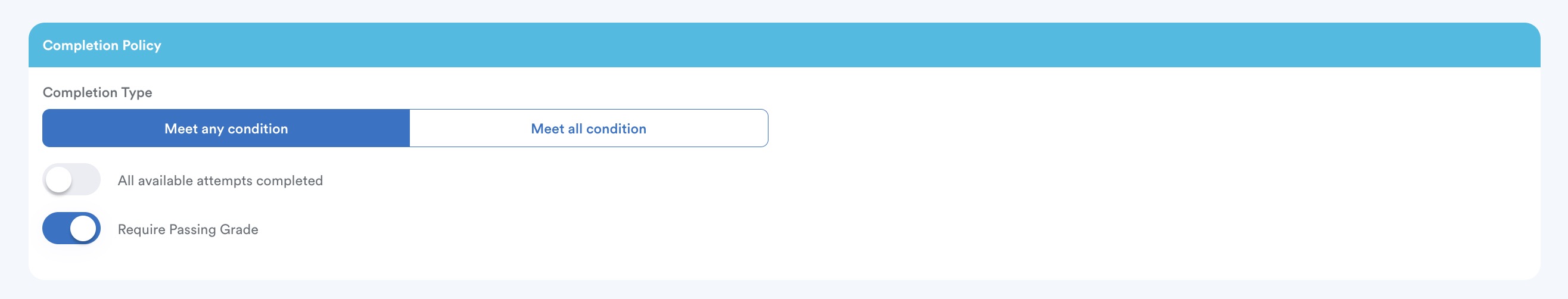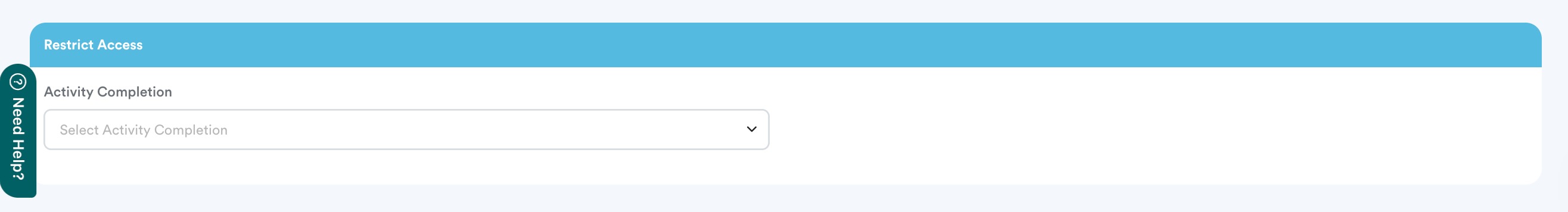 Activity Completion - This dropdown lists all activities in the course. Select if learners must complete any activity before accessing this assessment.