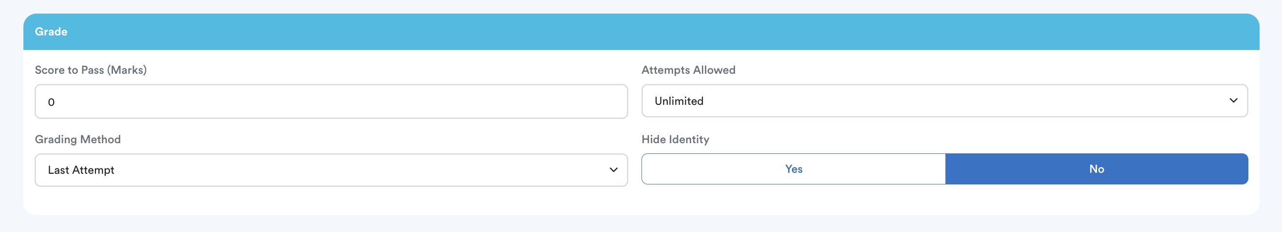 - Hide Identity - Choose Yes or No if you want to anonymize learner identities during grading.