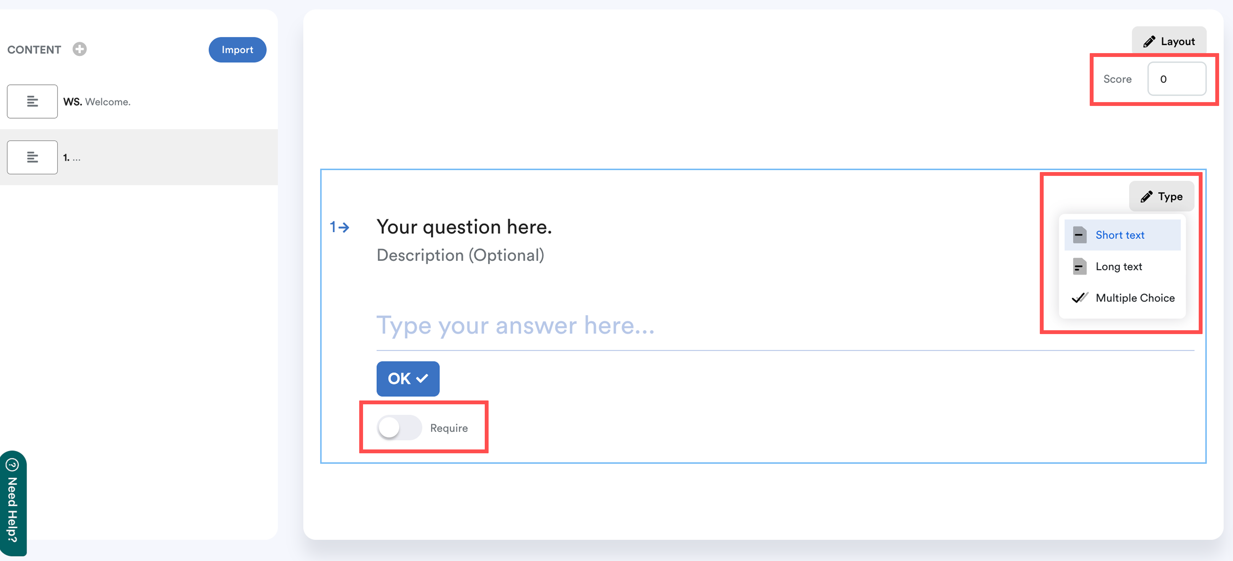 To add an image or modify the layout, click the Layout button within the question. (optional)