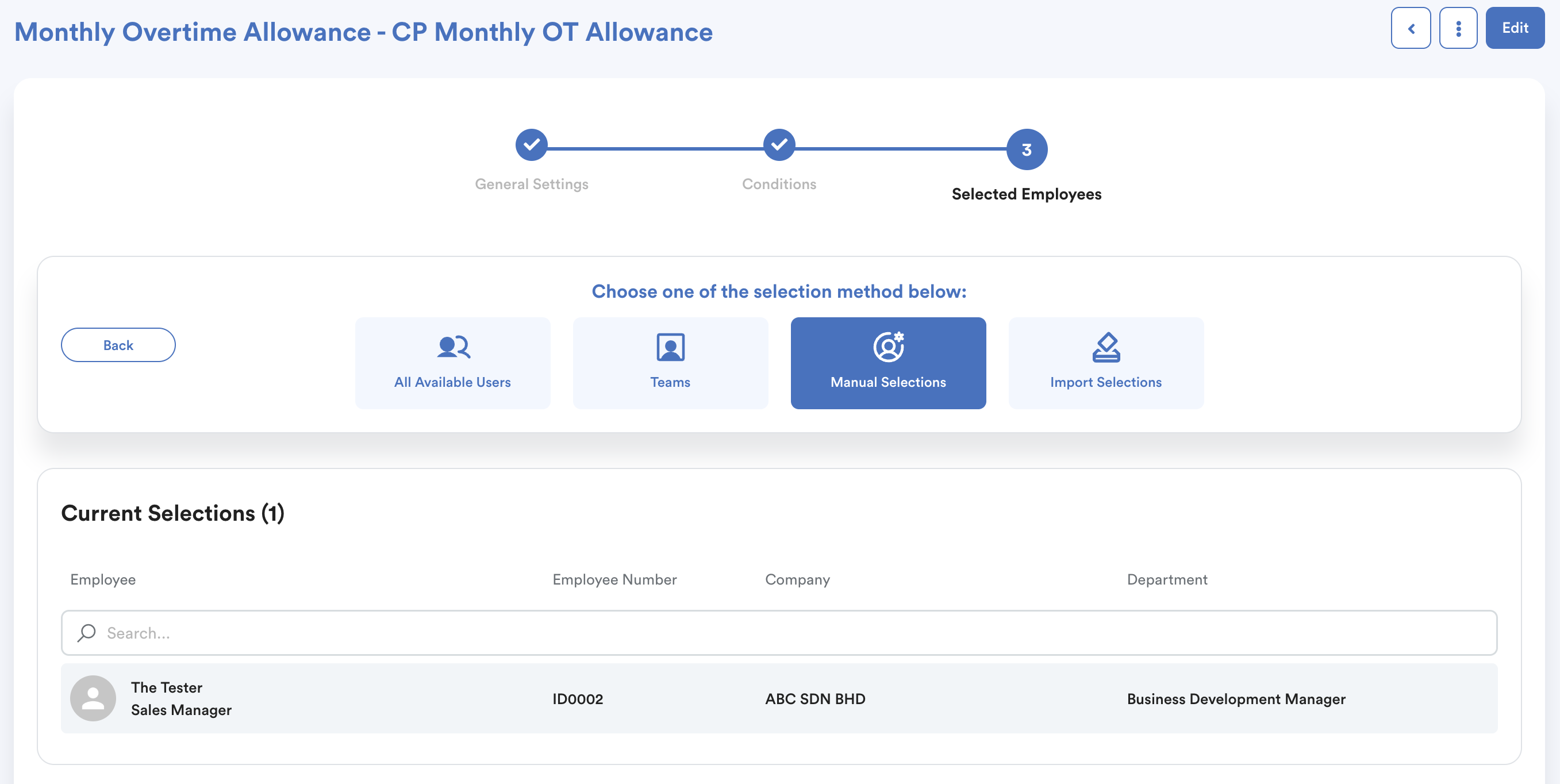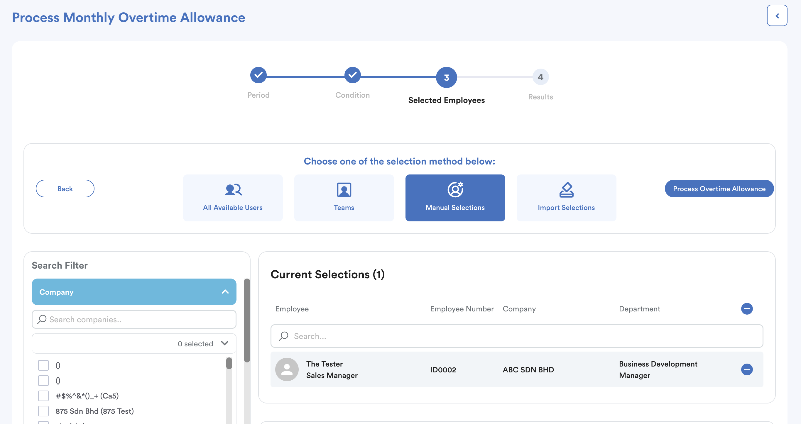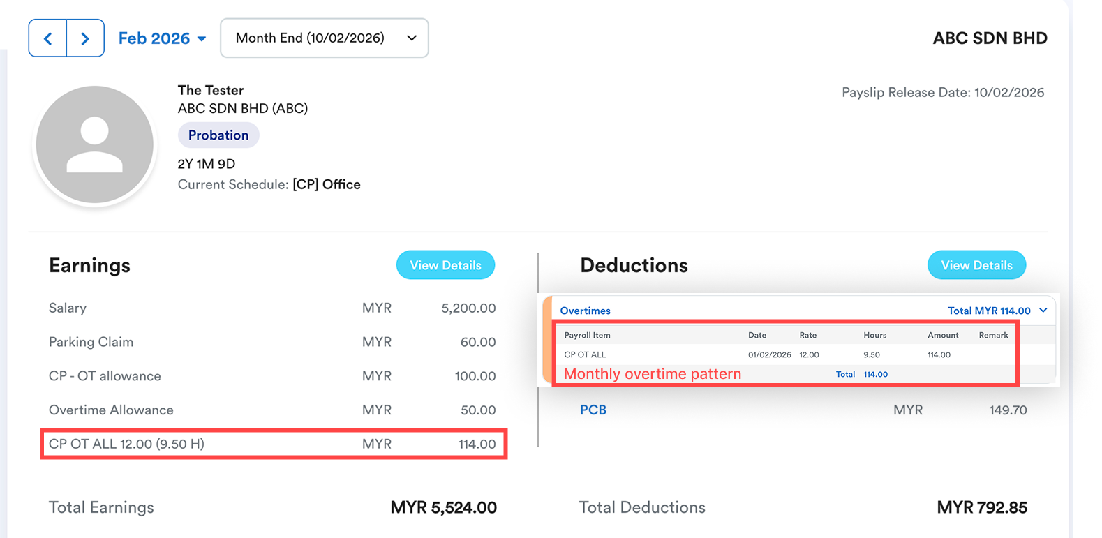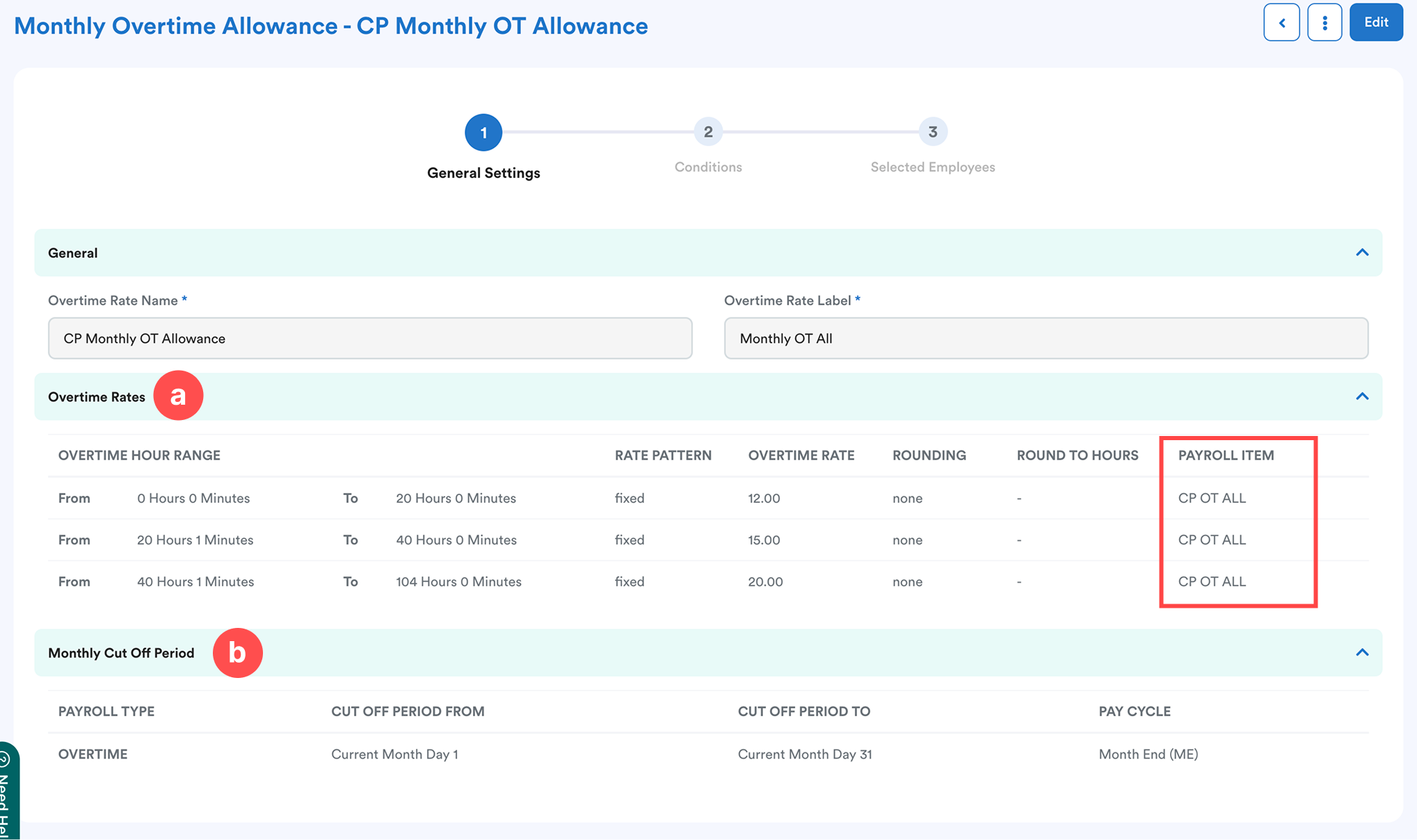 Approved OT hour: 9.5hr (within 1st tier of OT hour range set in Step 3)