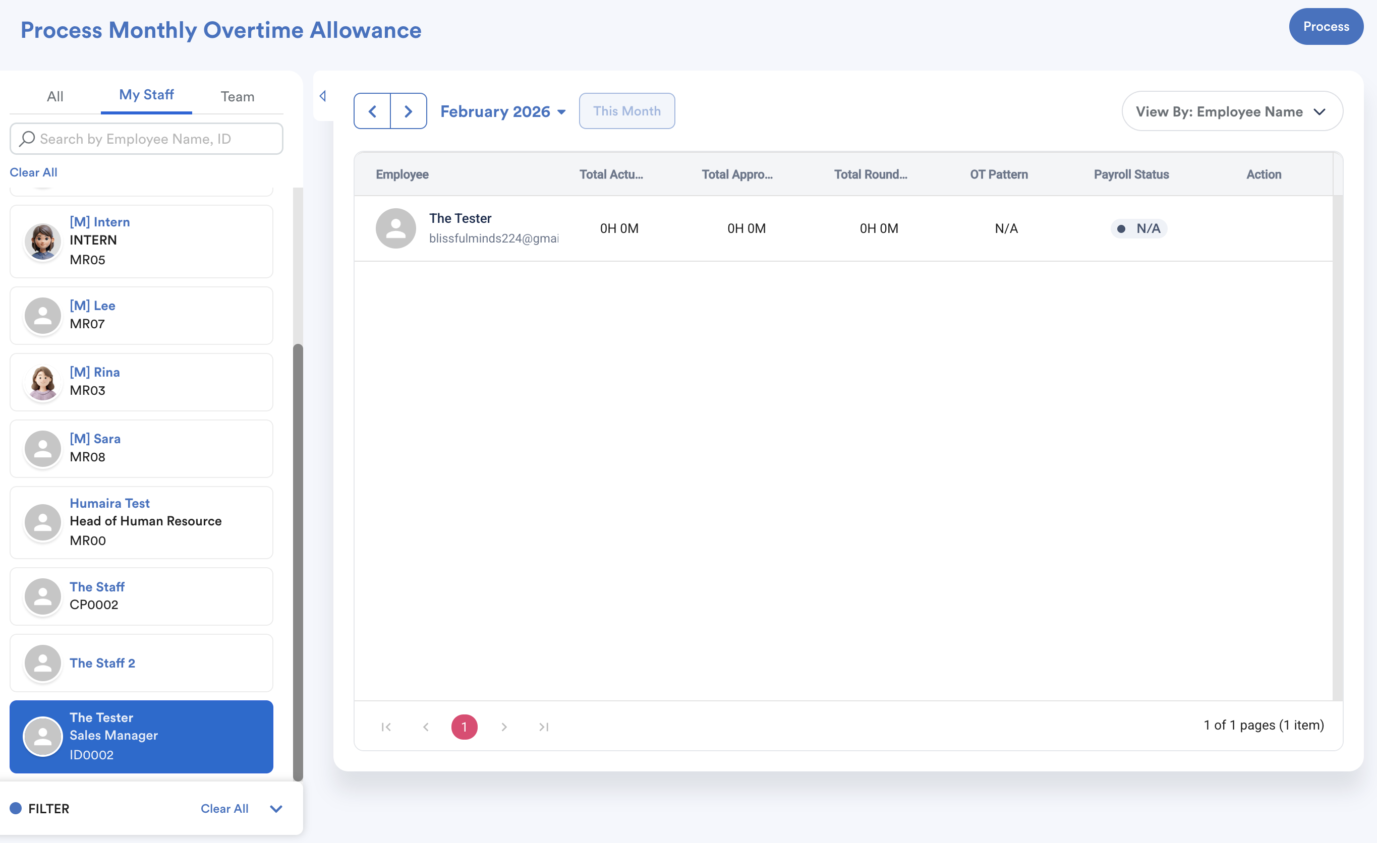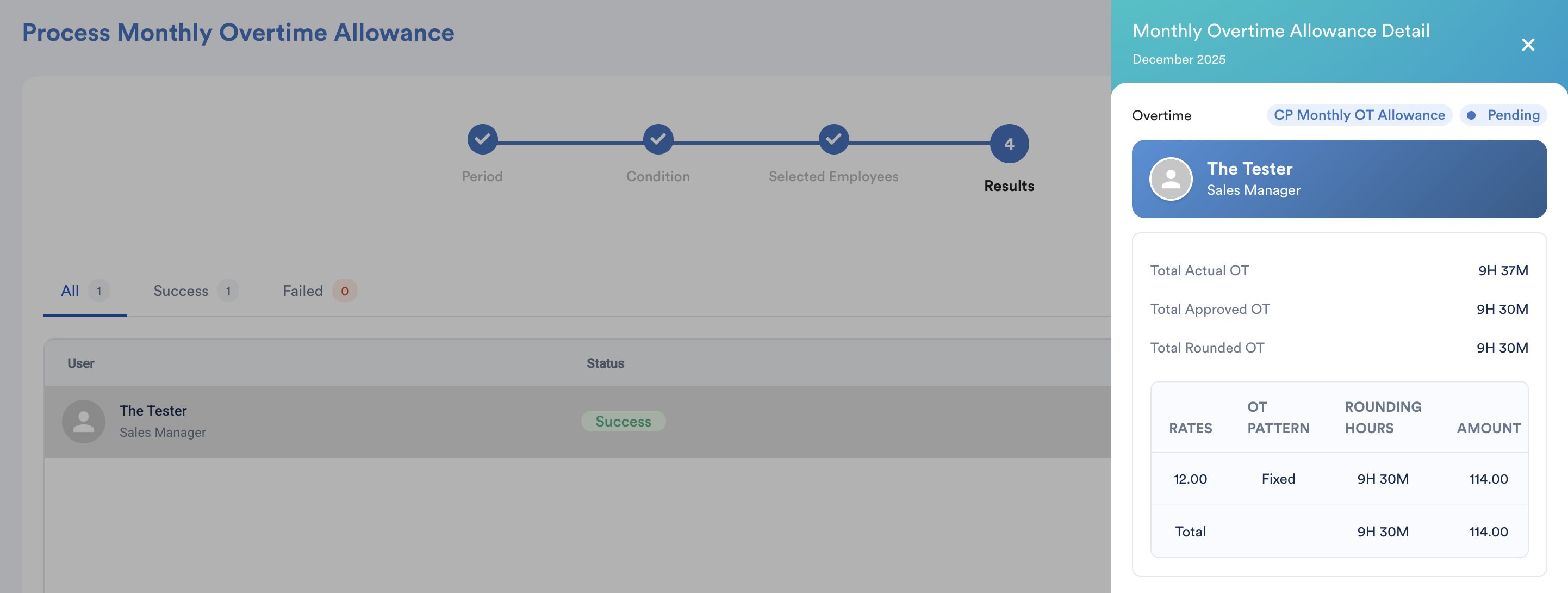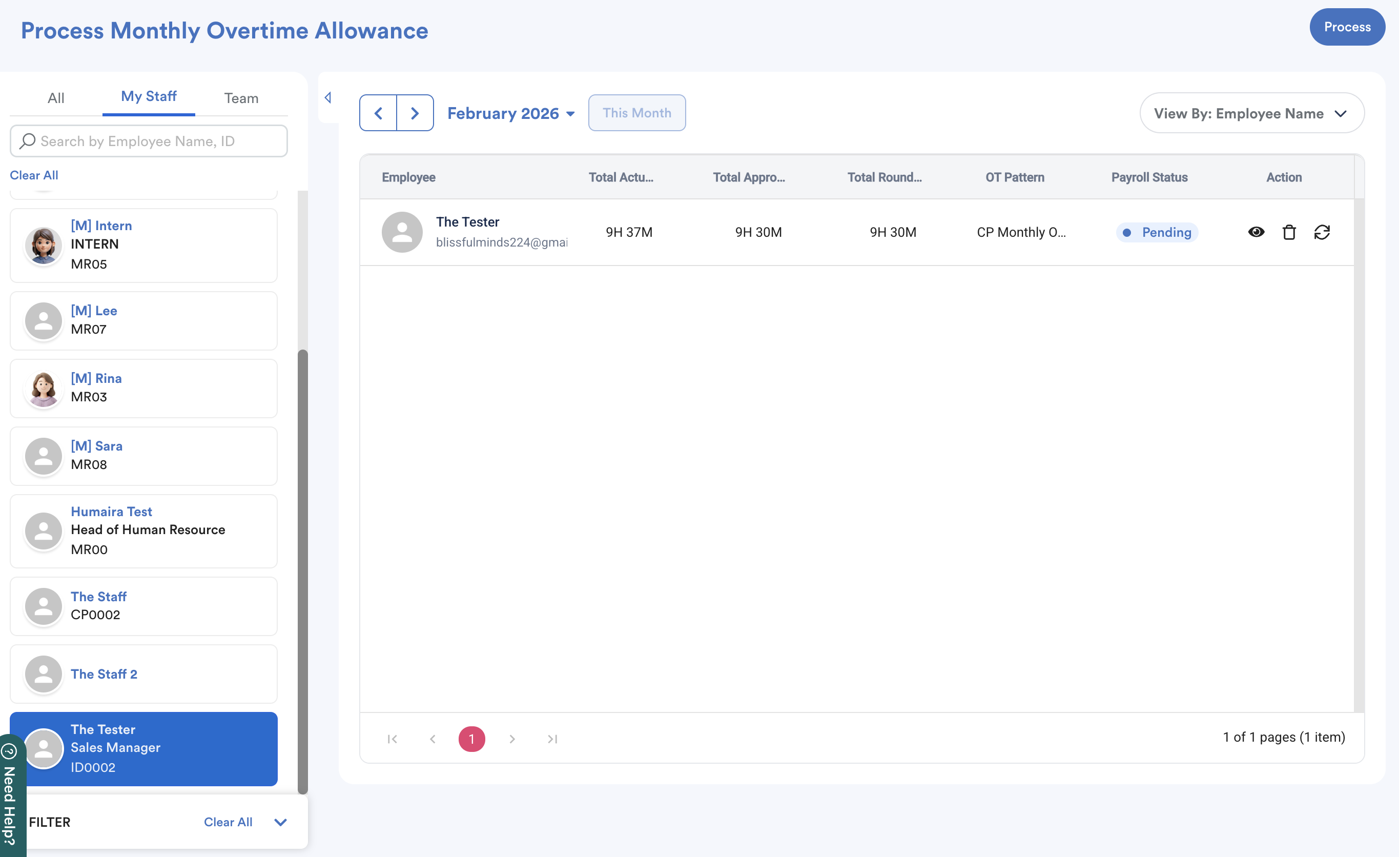 After processing, the status will change to "Pending". You may reprocess if you have updated the monthly overtime pattern setting.