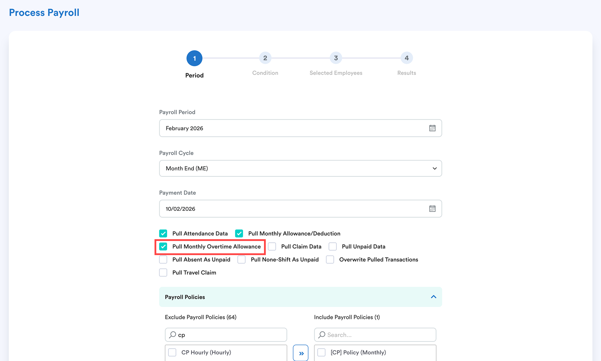 - Pay Cycle – Select the relevant pay cycle (e.g., Month End) to align overtime payout with payroll.