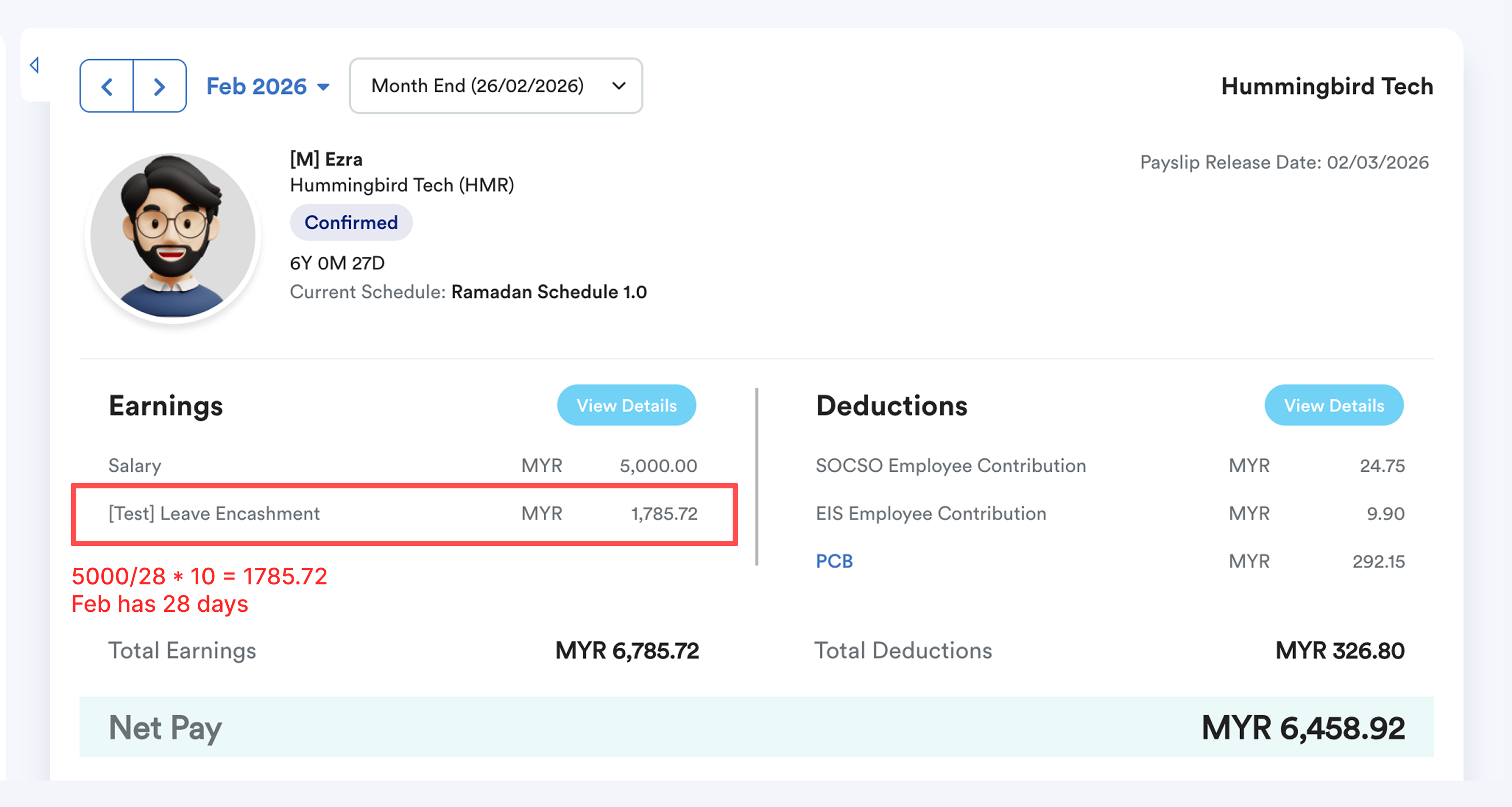 - The leave encashment is displayed on the employee’s payslip.