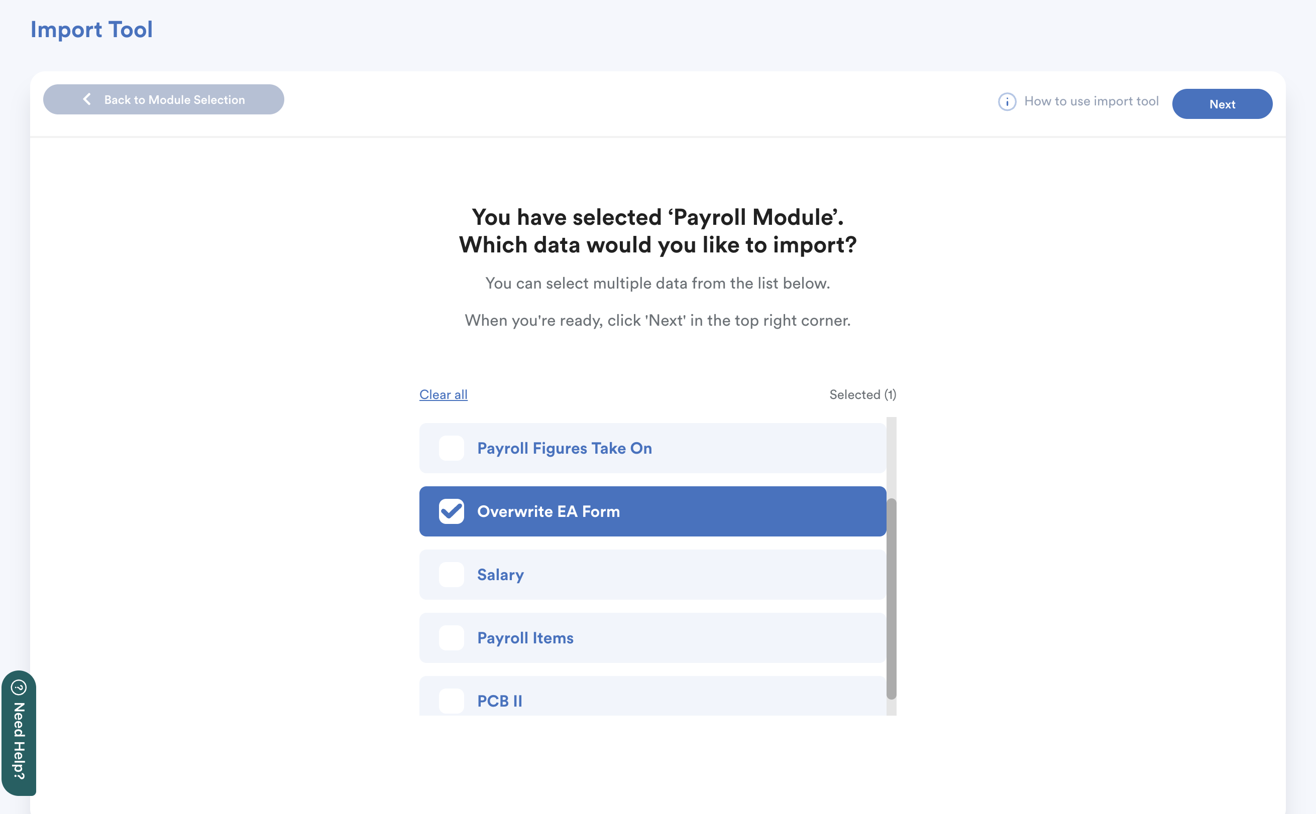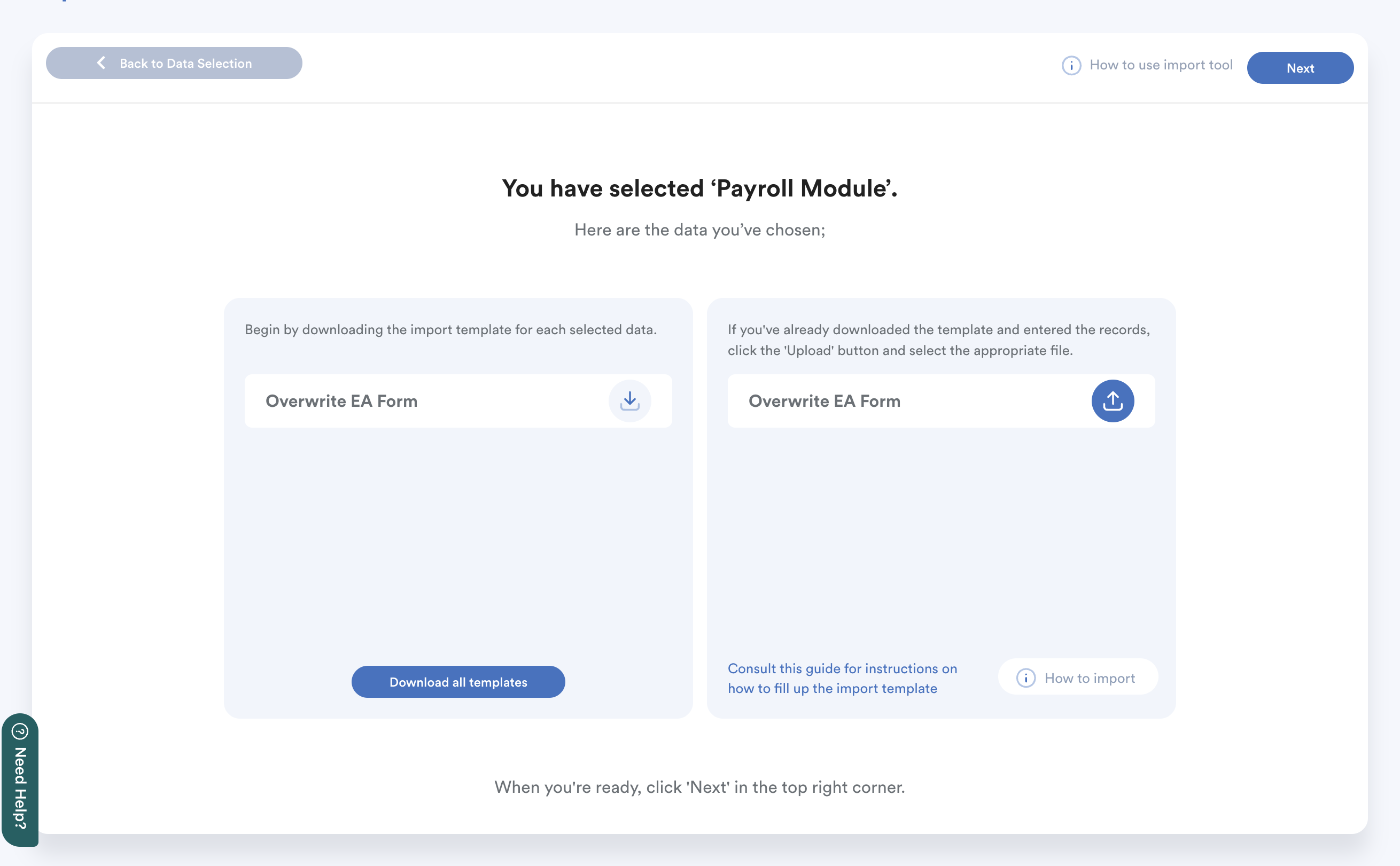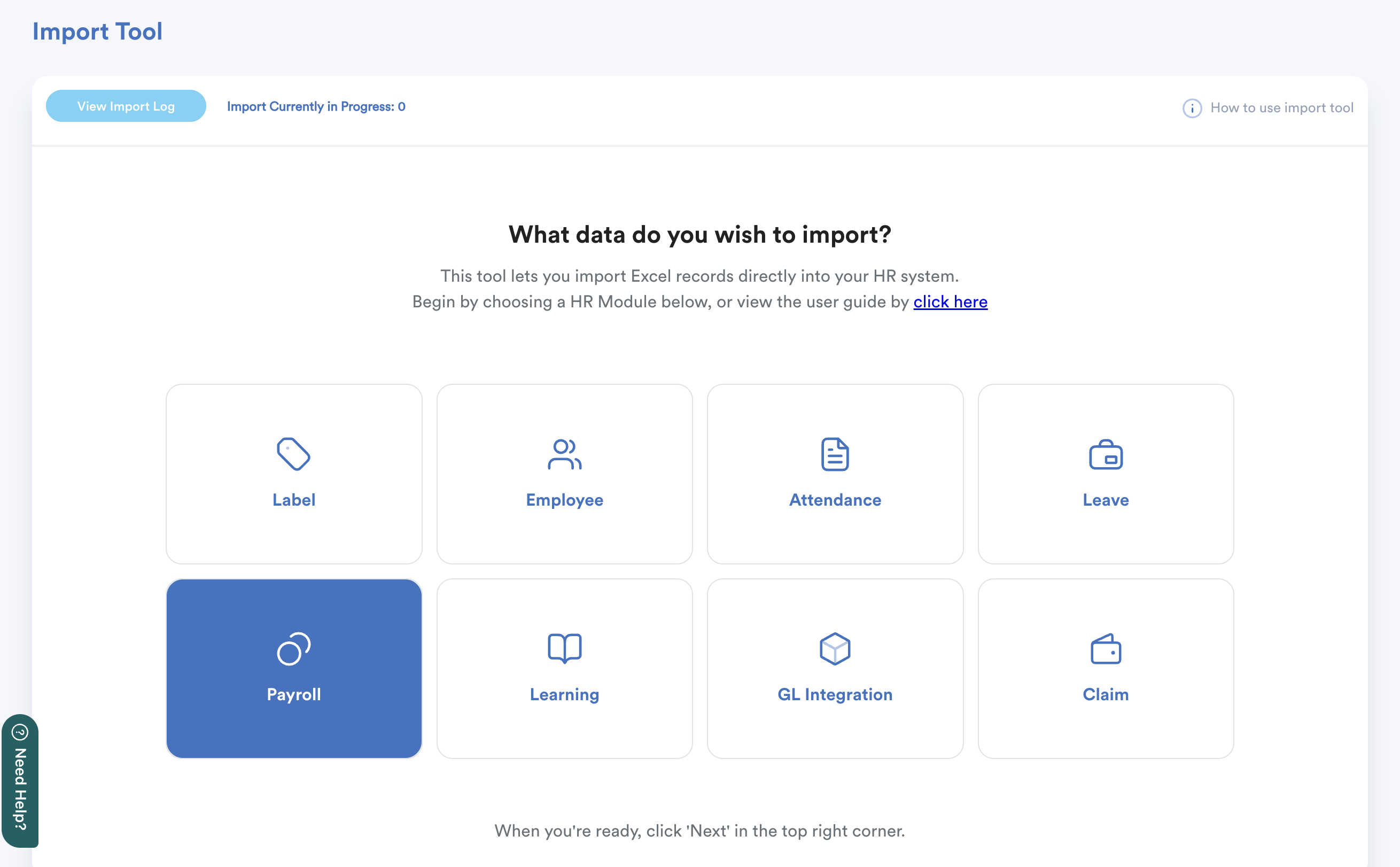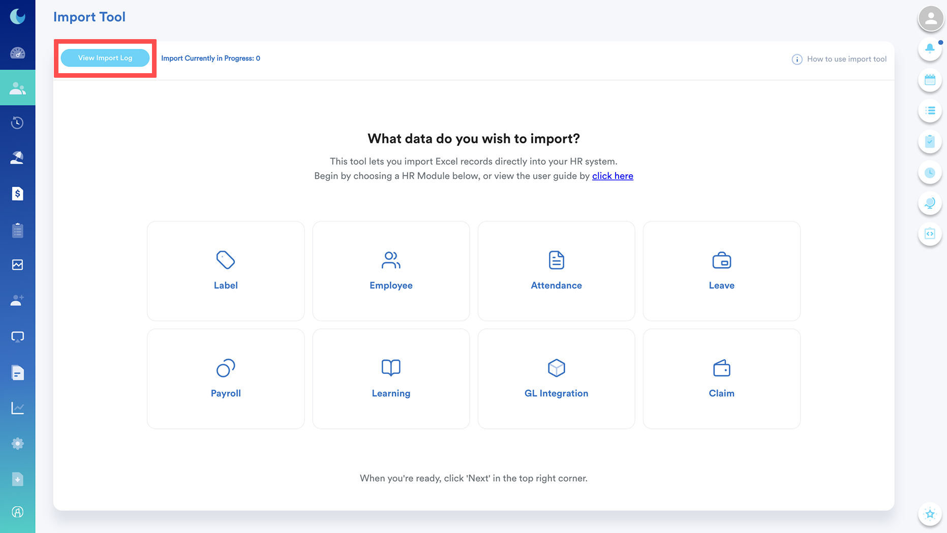 You'll be redirected to the main Import Tool screen.