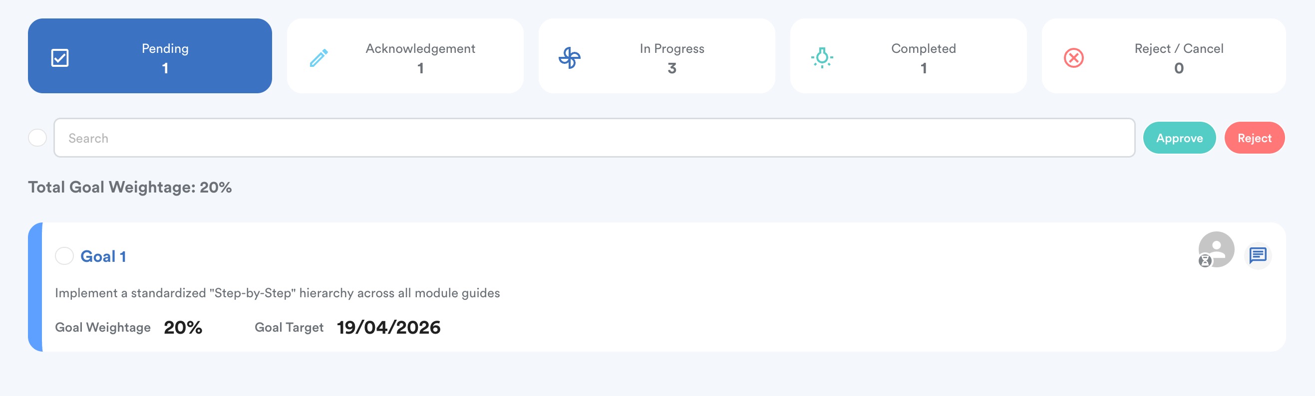 - Appraisers can select these goals to either Approve or Reject them.