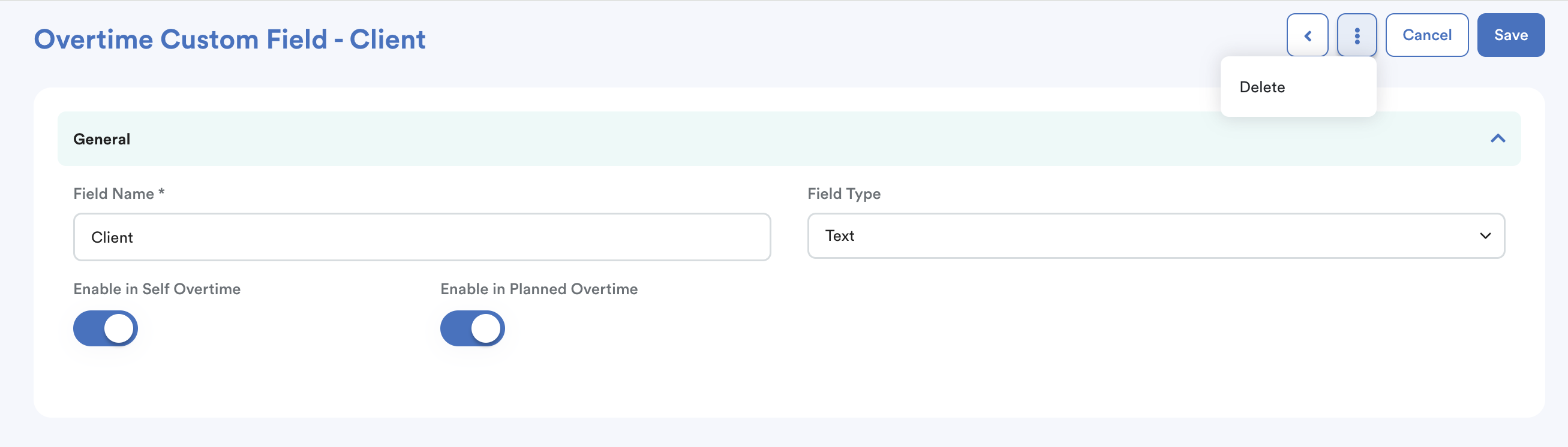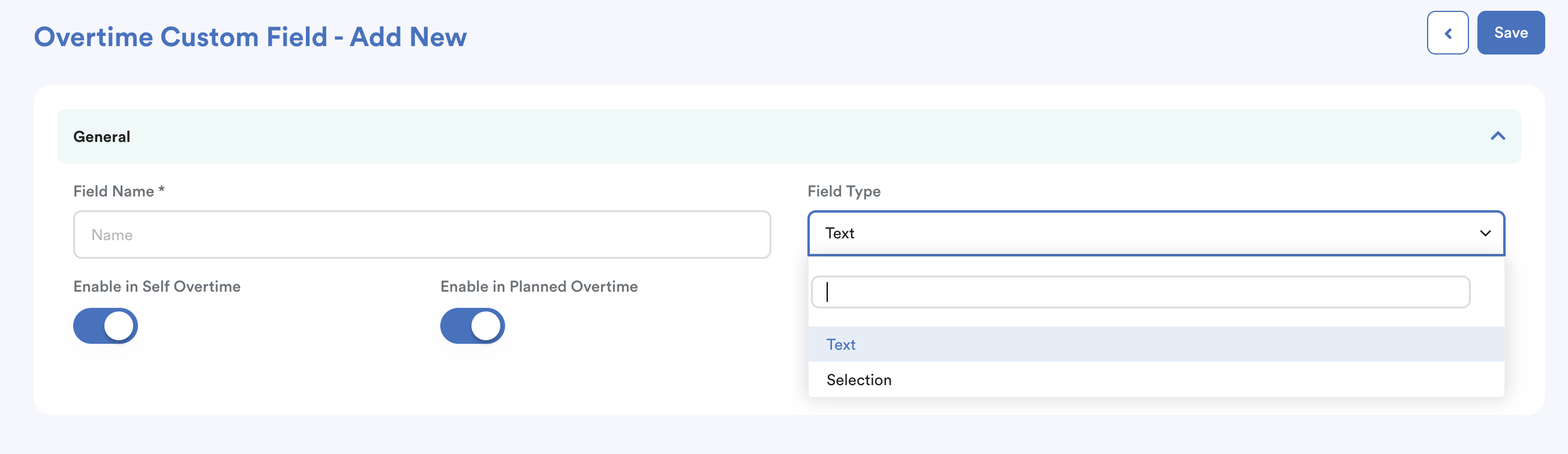 Choose whether to enable this custom field in Self Overtime or Planned Overtime by toggling the buttons.